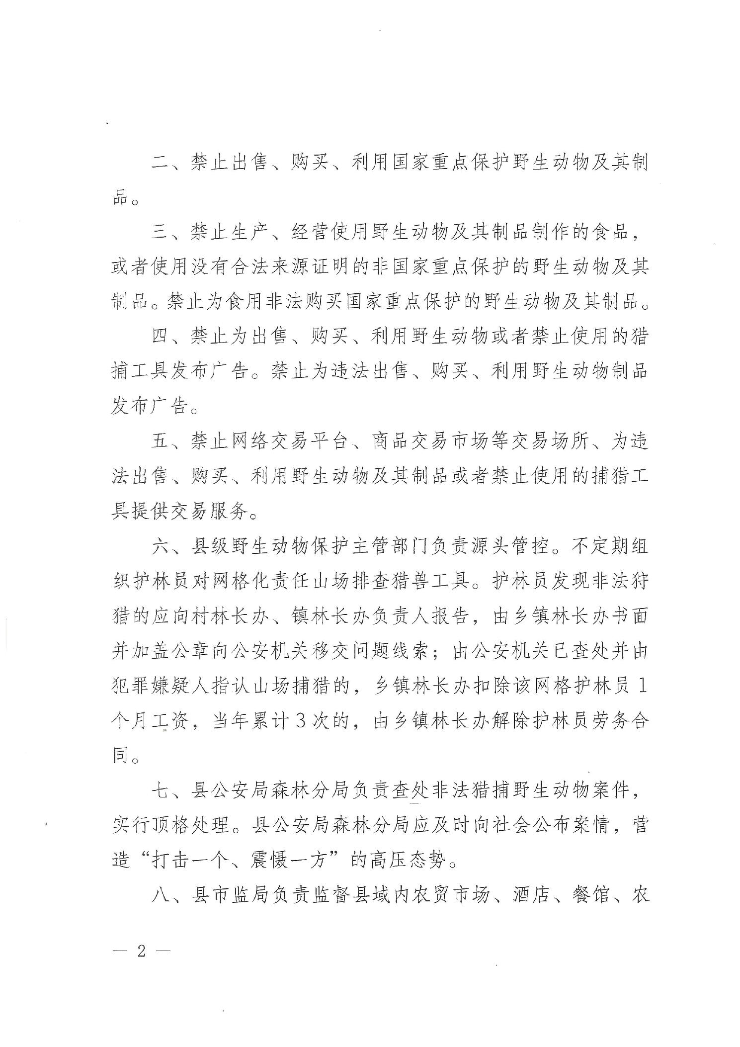 (二)县公安局森林分局负责查处非法猎捕野生动物案件,实行定格处理。