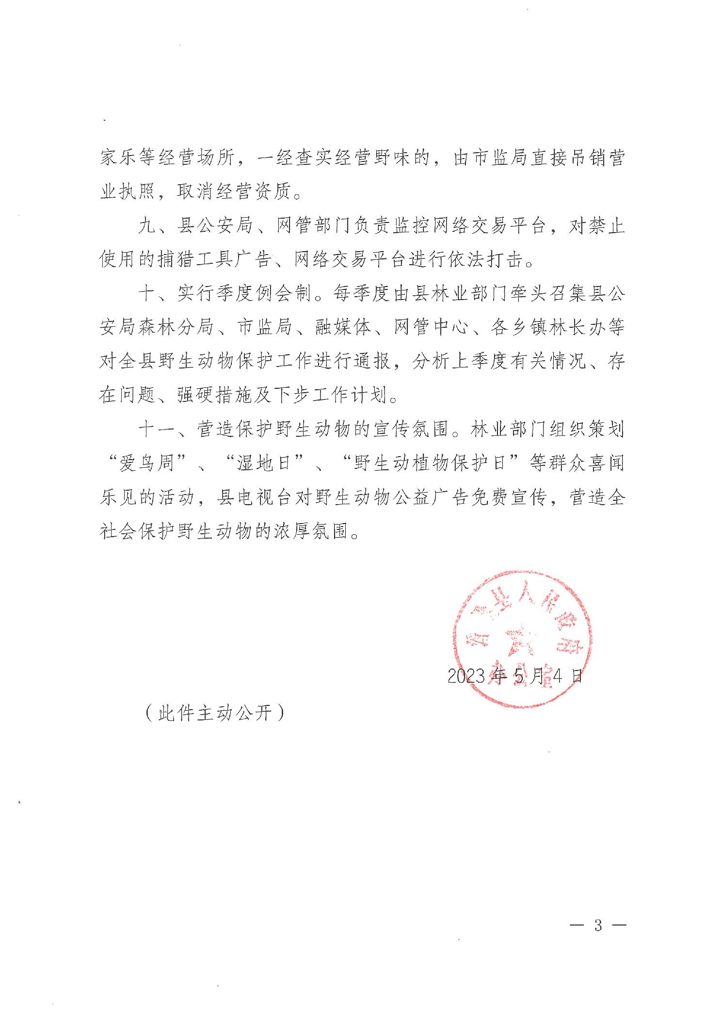 为保护我县野生动物,拯救珍贵、濒危野生动物、维护生物多样性和生态平衡,推进生态文明建设。