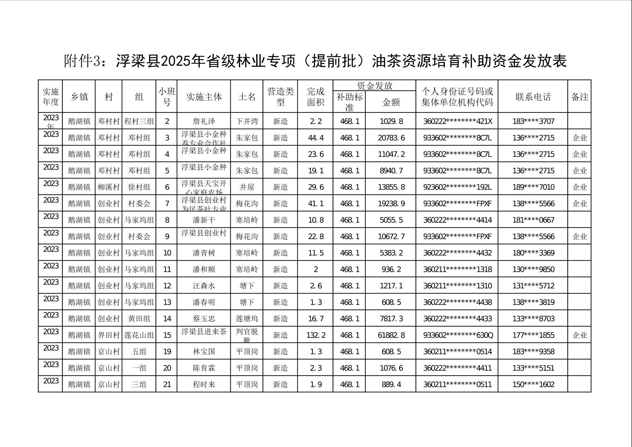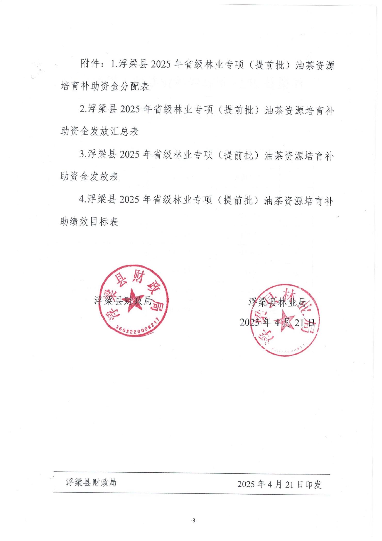 关于下达浮梁县2025年度省级林业专项(提前批)油茶资源培育补助资金的通知(3).pdf