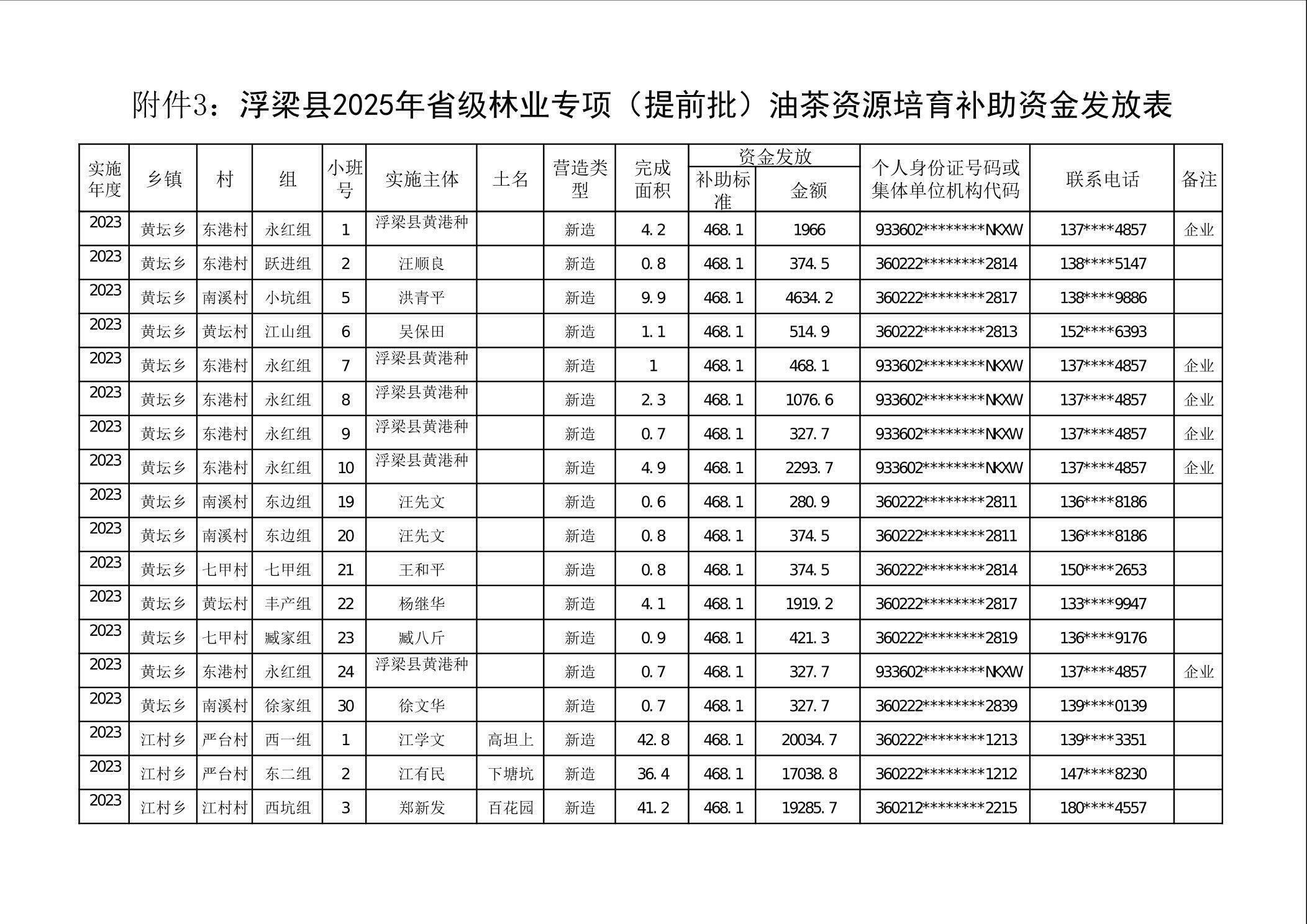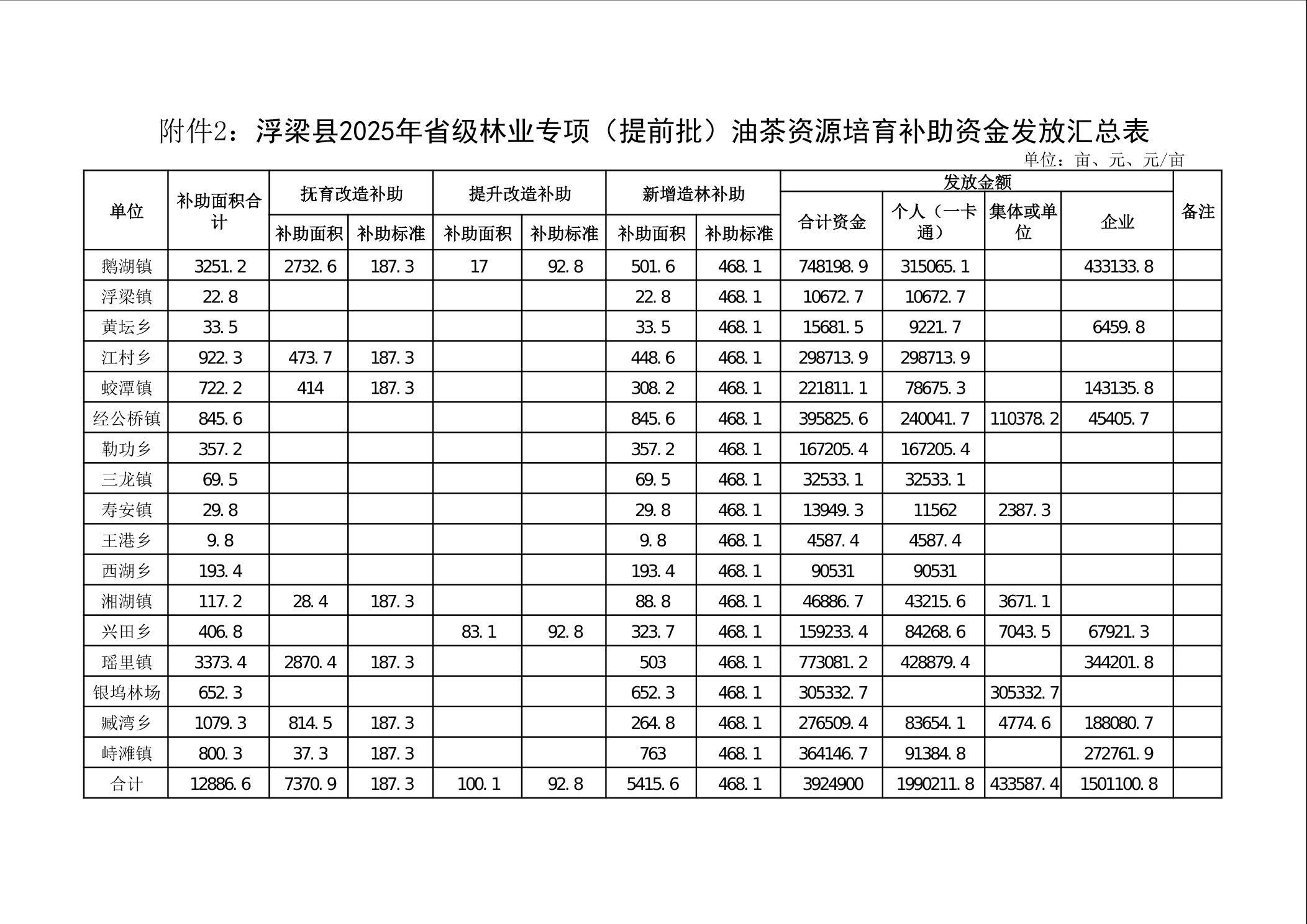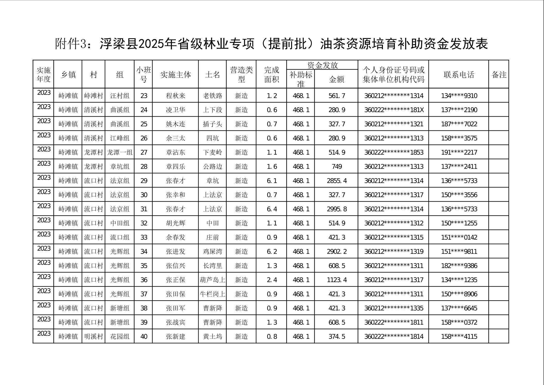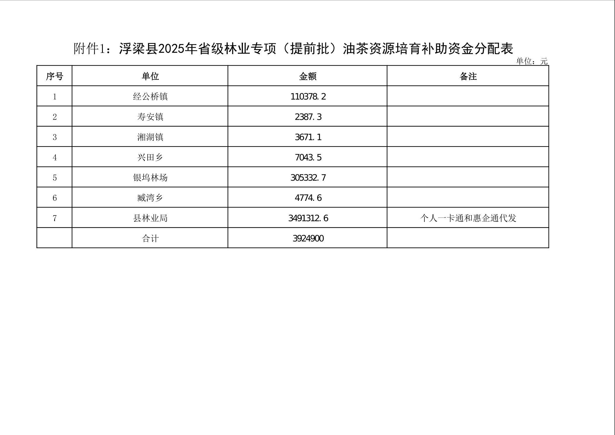 关于下达浮梁县2025年度省级林业专项(提前批)油茶资源培育补助资金的通知