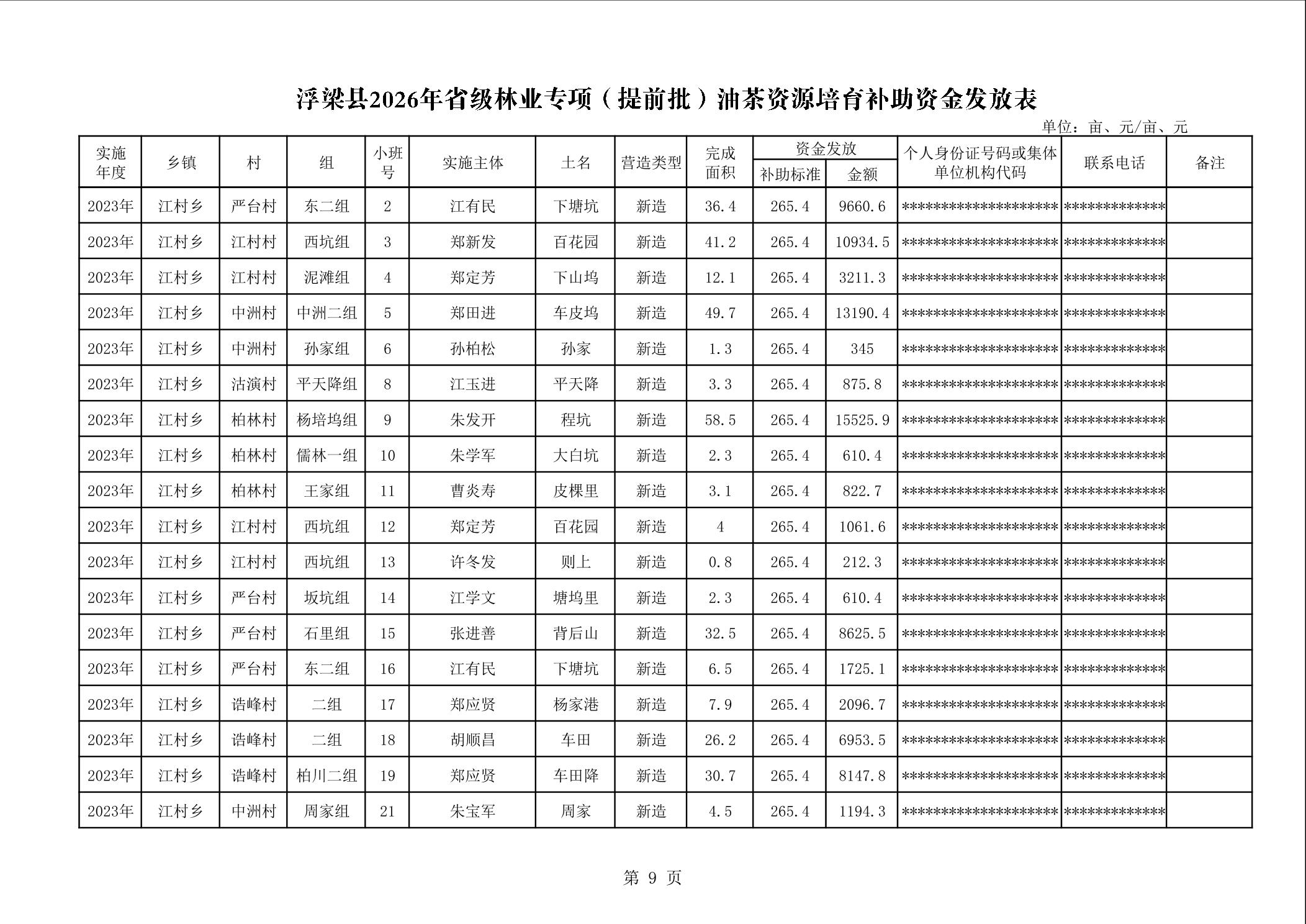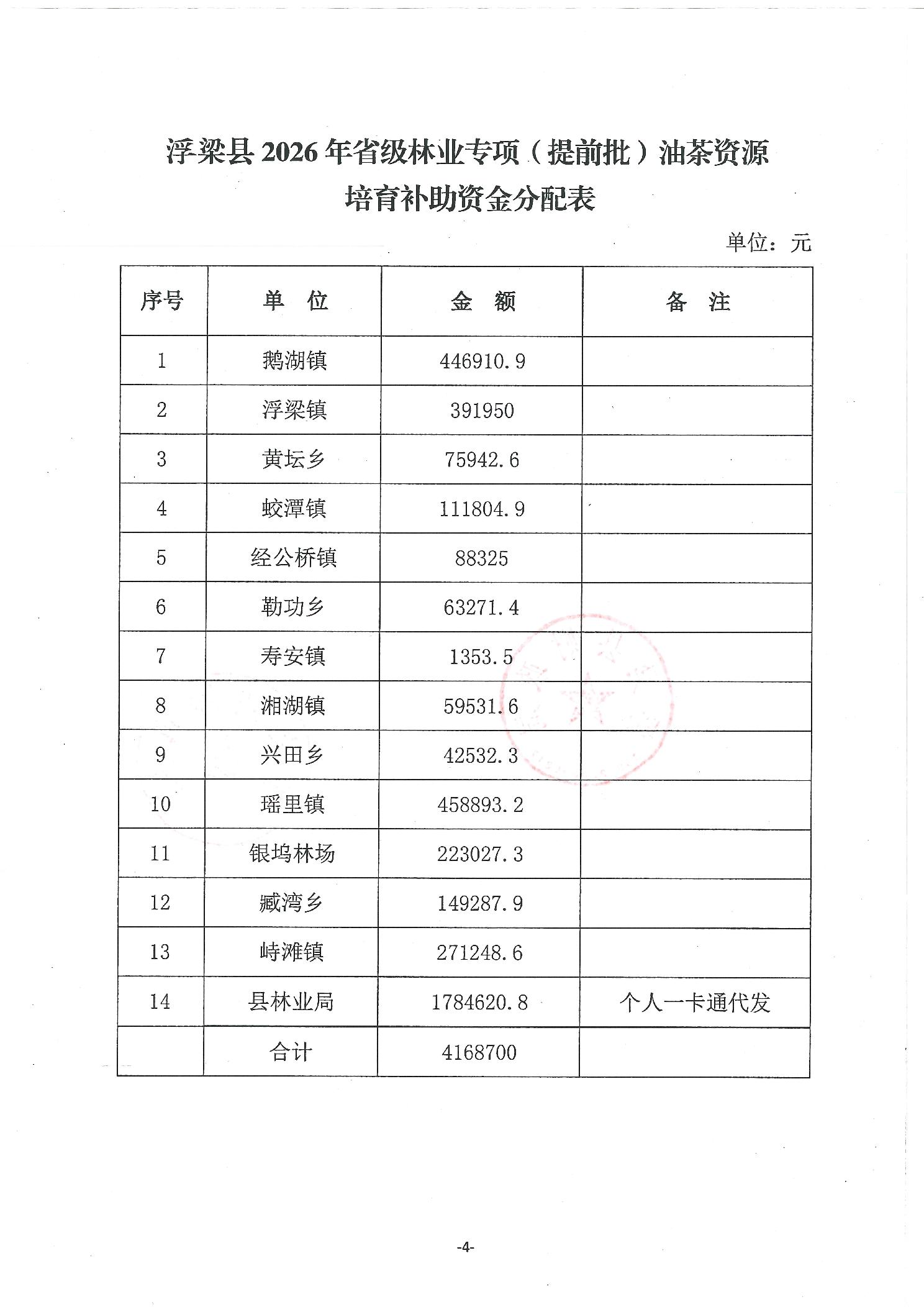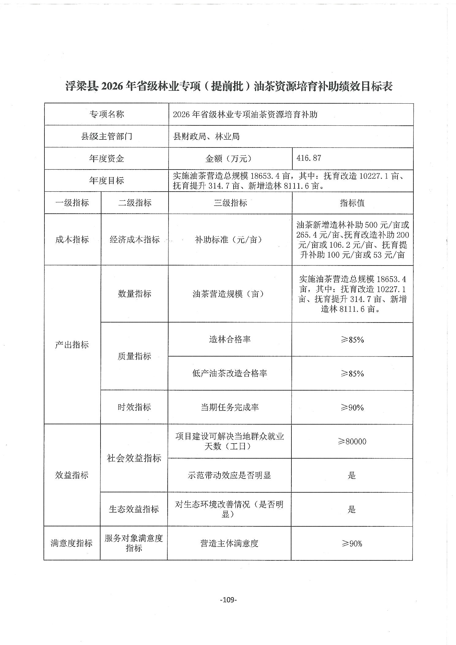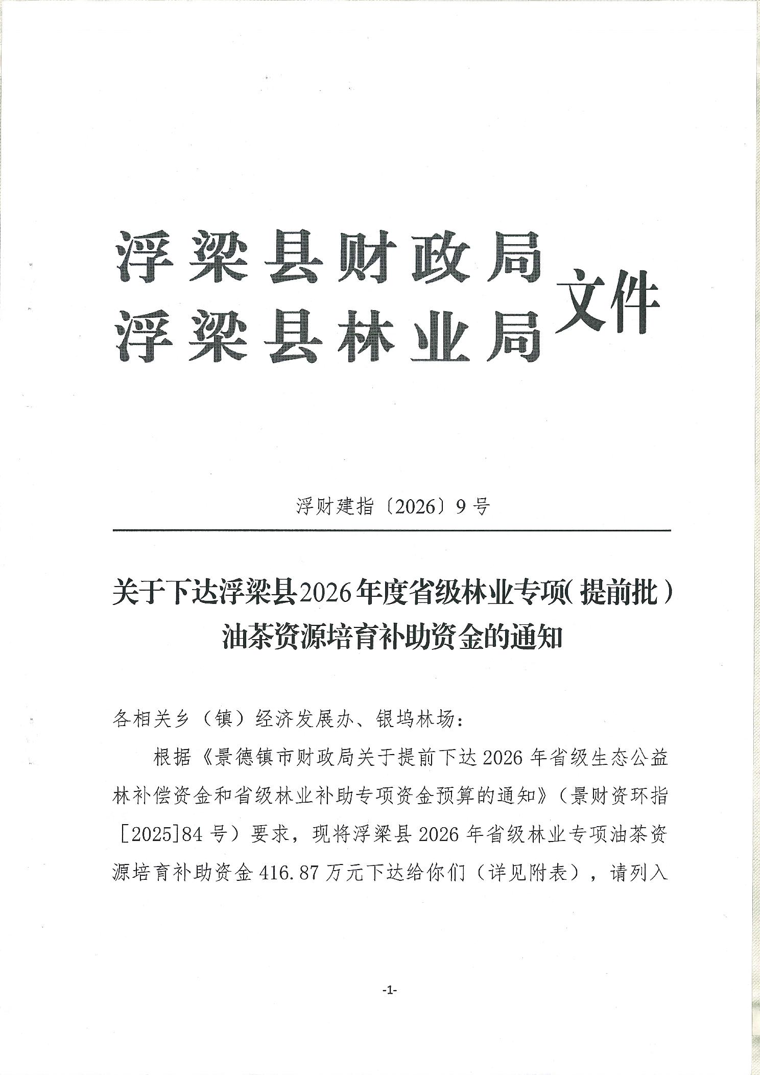 关于下达浮梁县2026年度省级林业专项(提前批)油茶资源培育补助资金的通知(浮财建指【2026】9号)