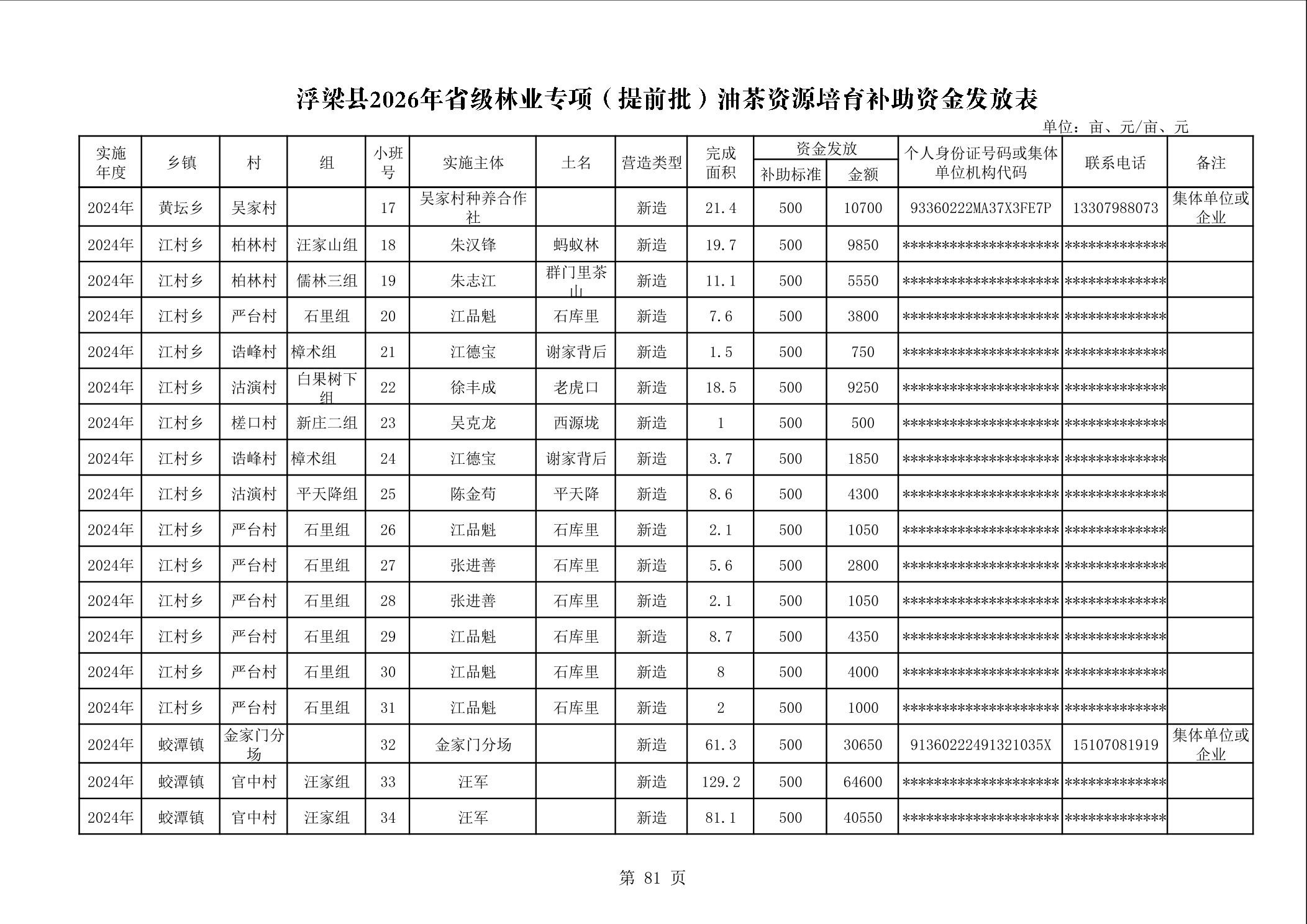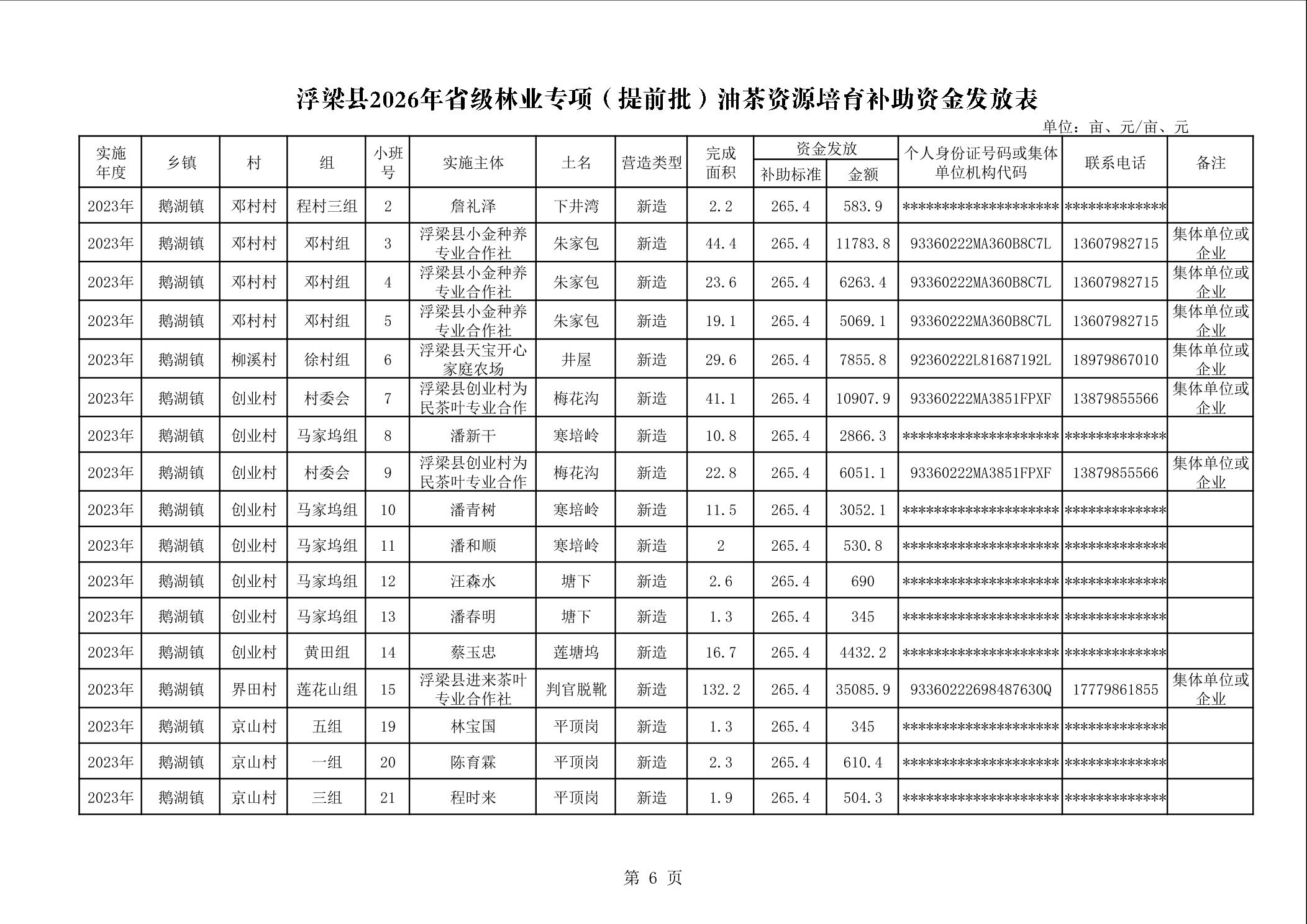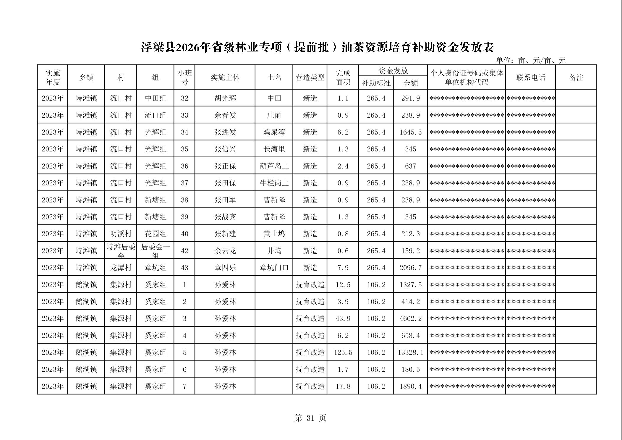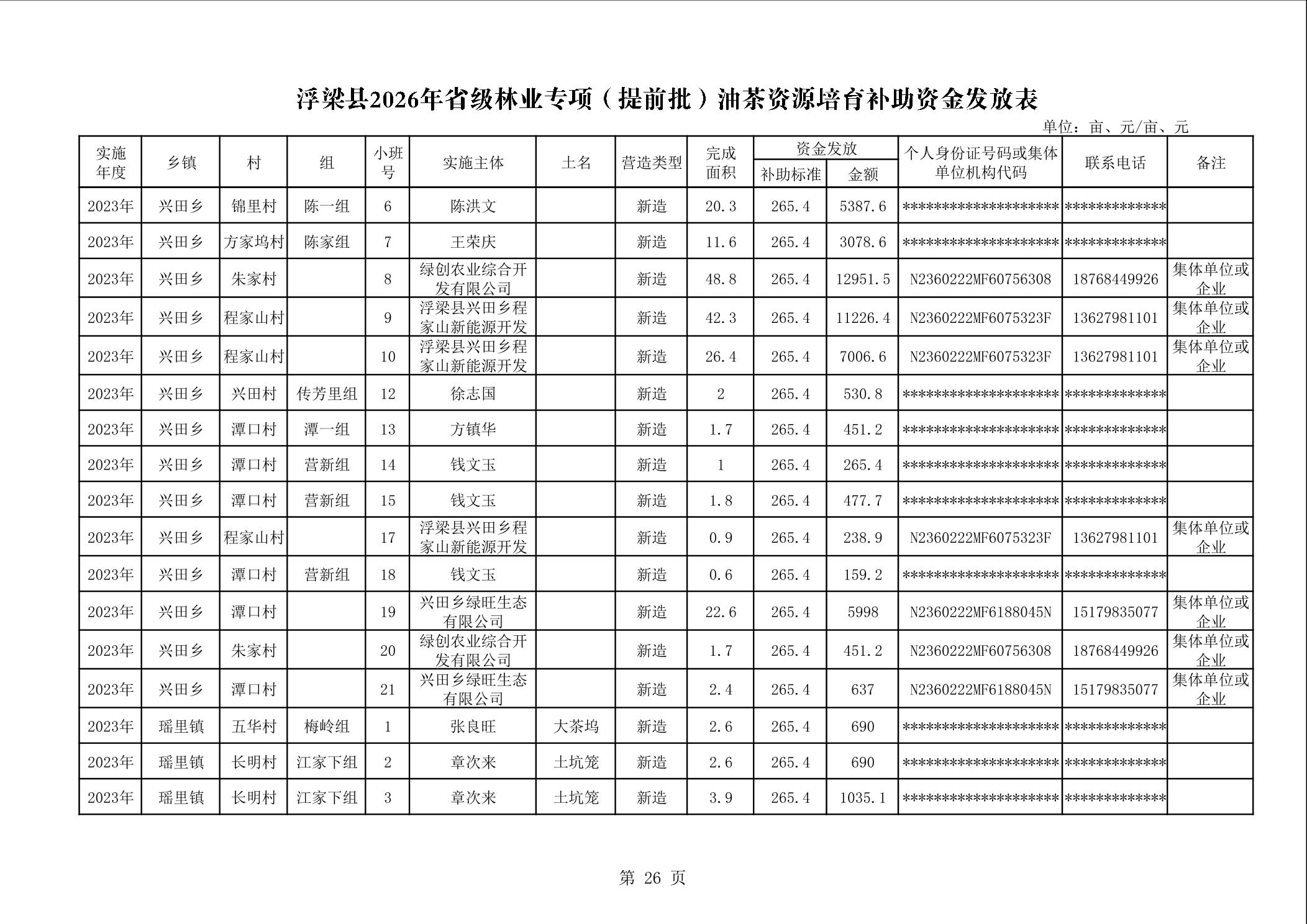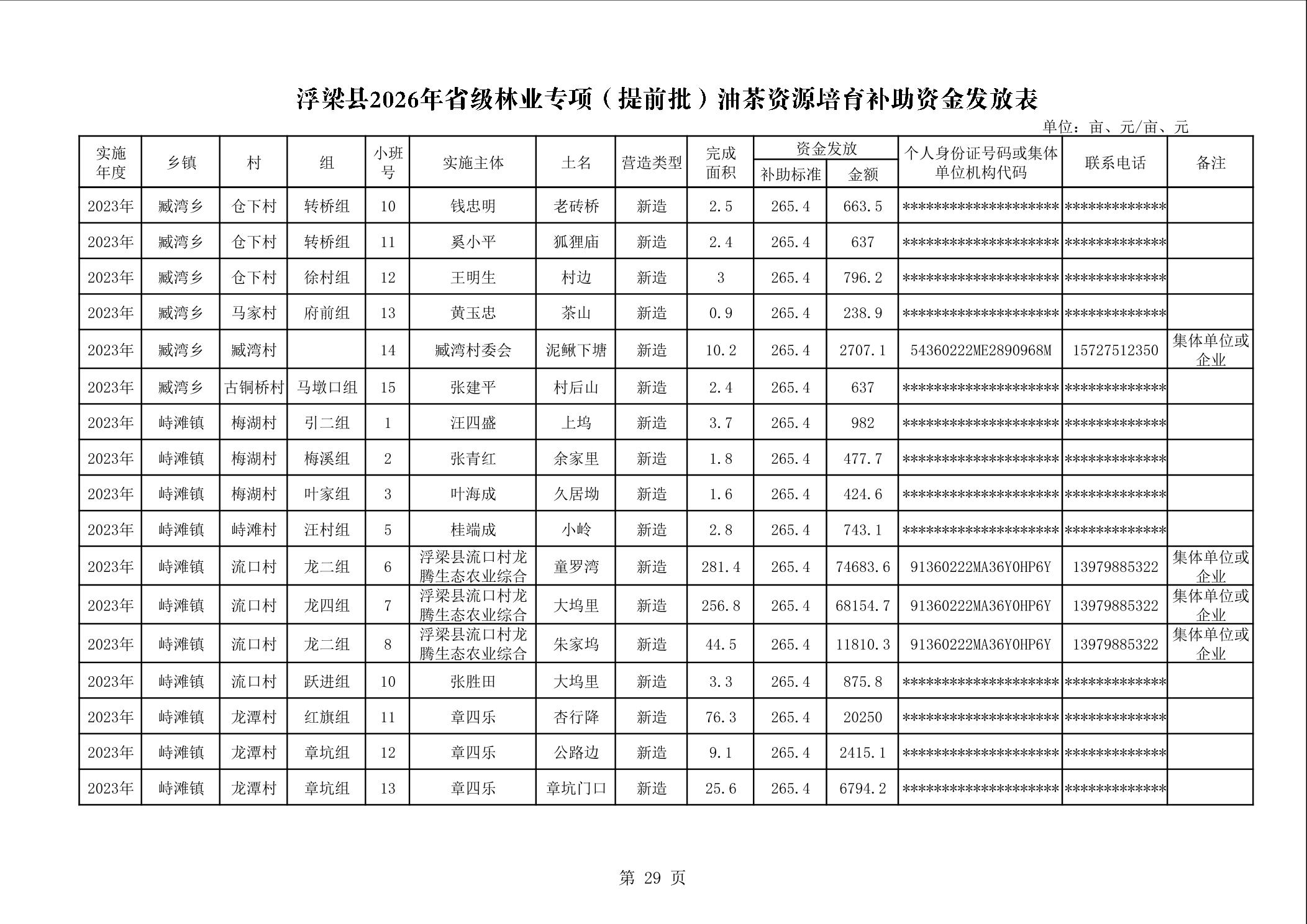 关于下达浮梁县2026年度省级林业专项(提前批)油茶资源培育补助资金的通知(浮财建指【2026】9号)