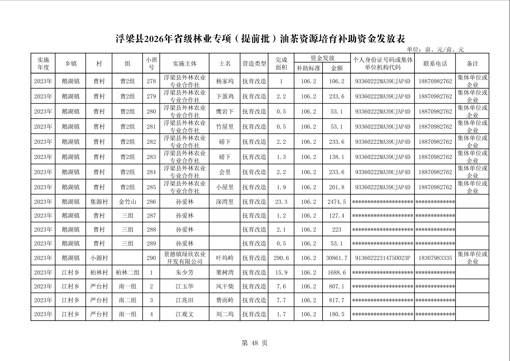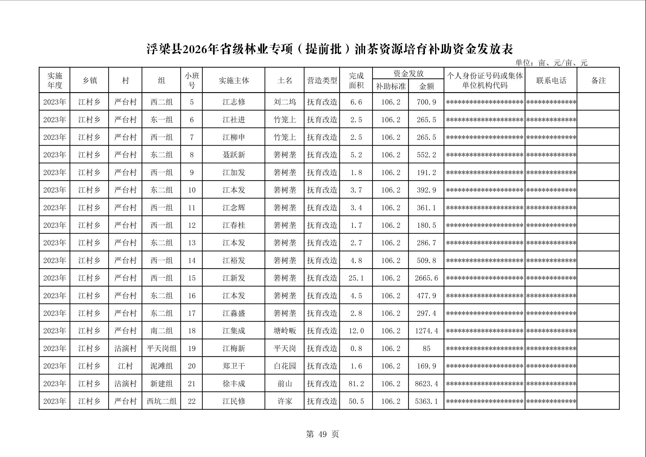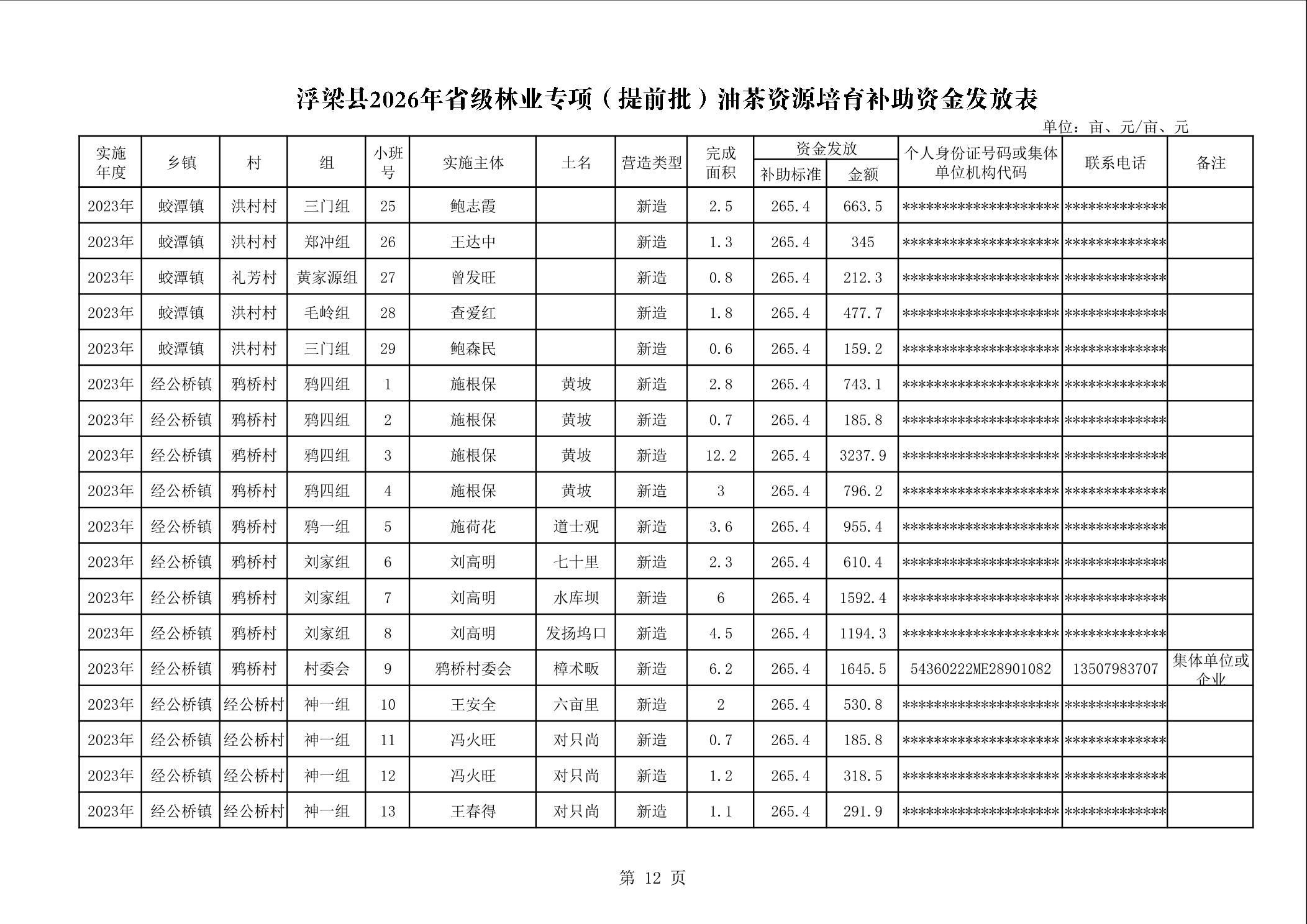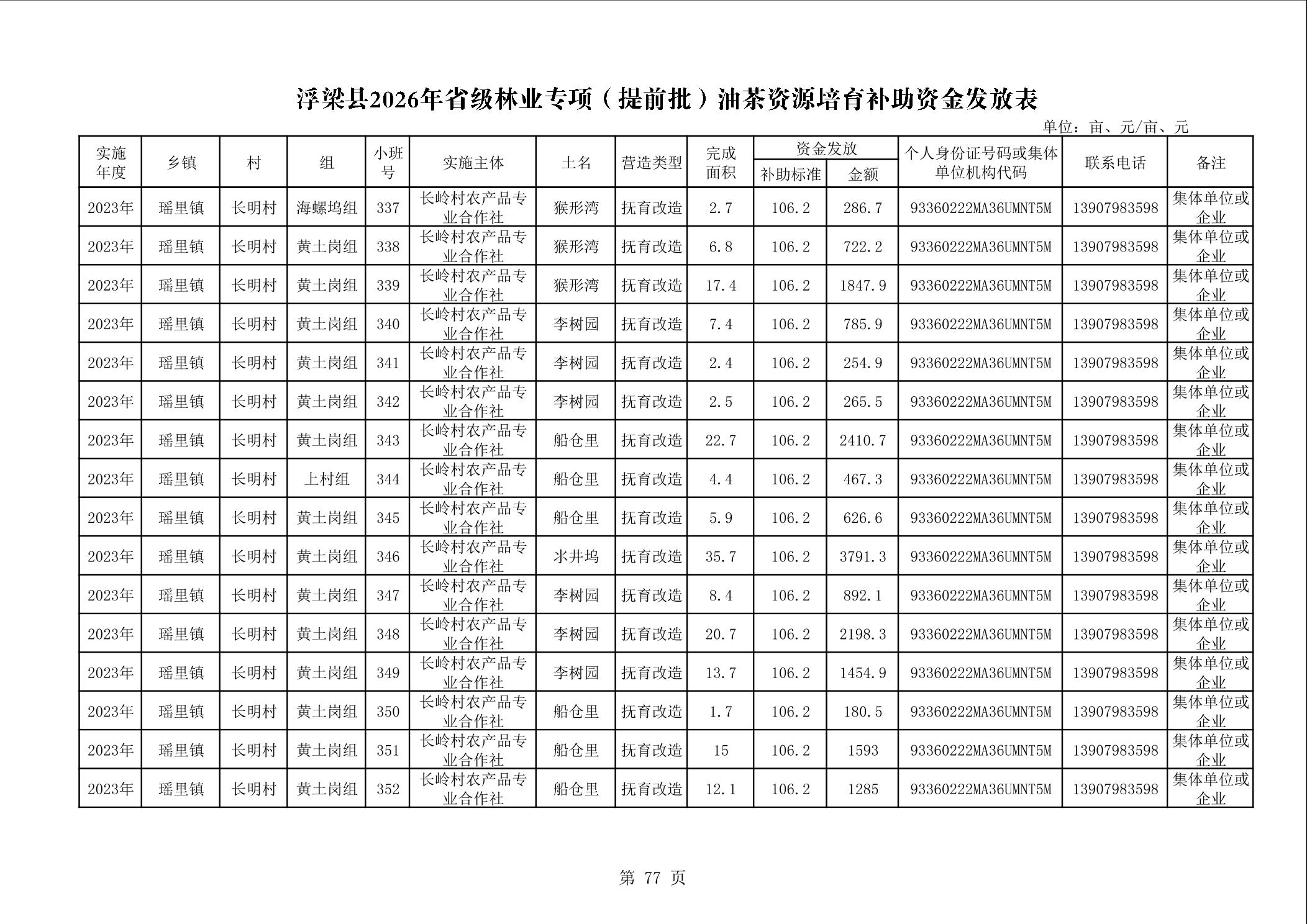 关于下达浮梁县2026年度省级林业专项(提前批)油茶资源培育补助资金的通知(浮财建指【2026】9号)