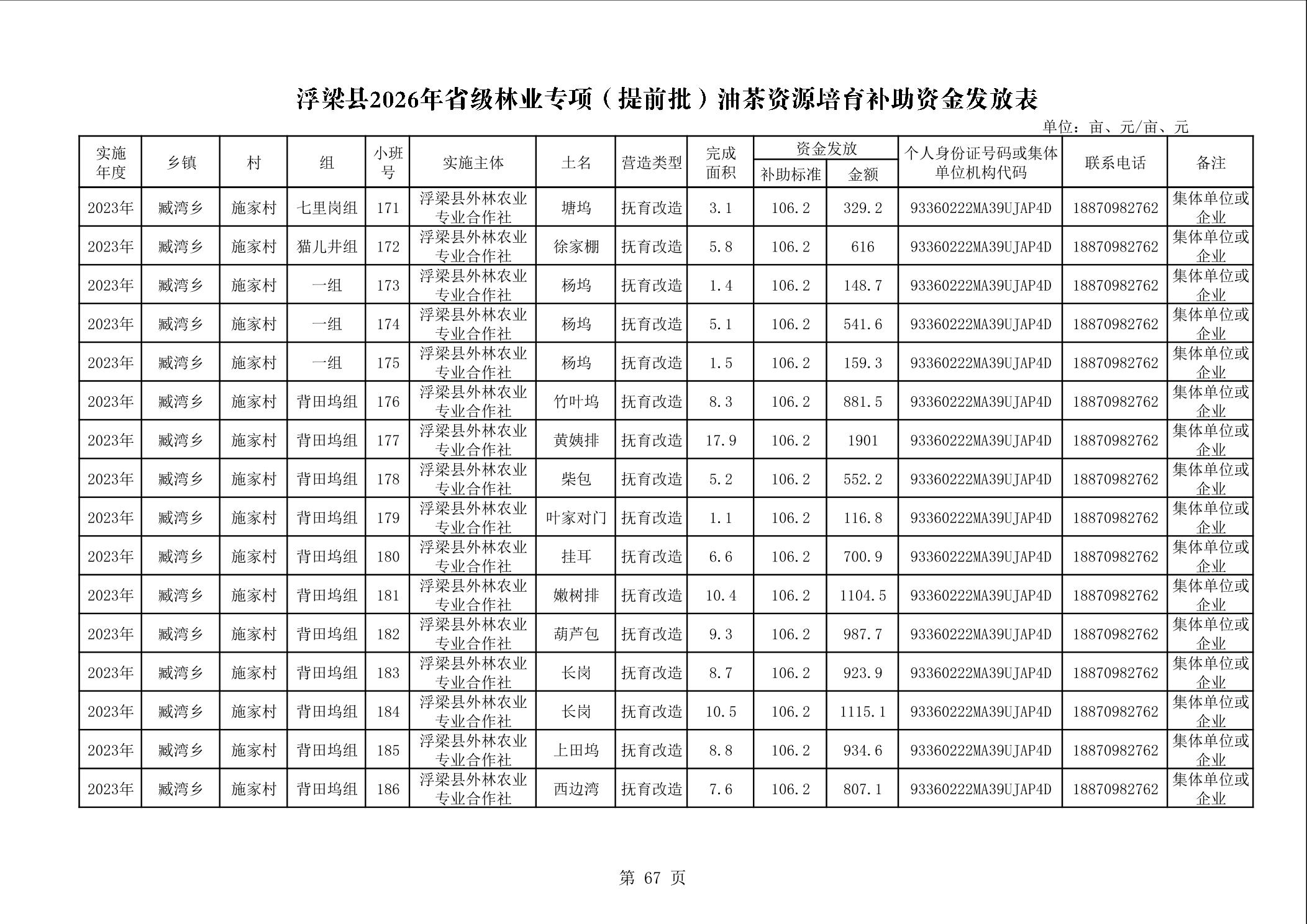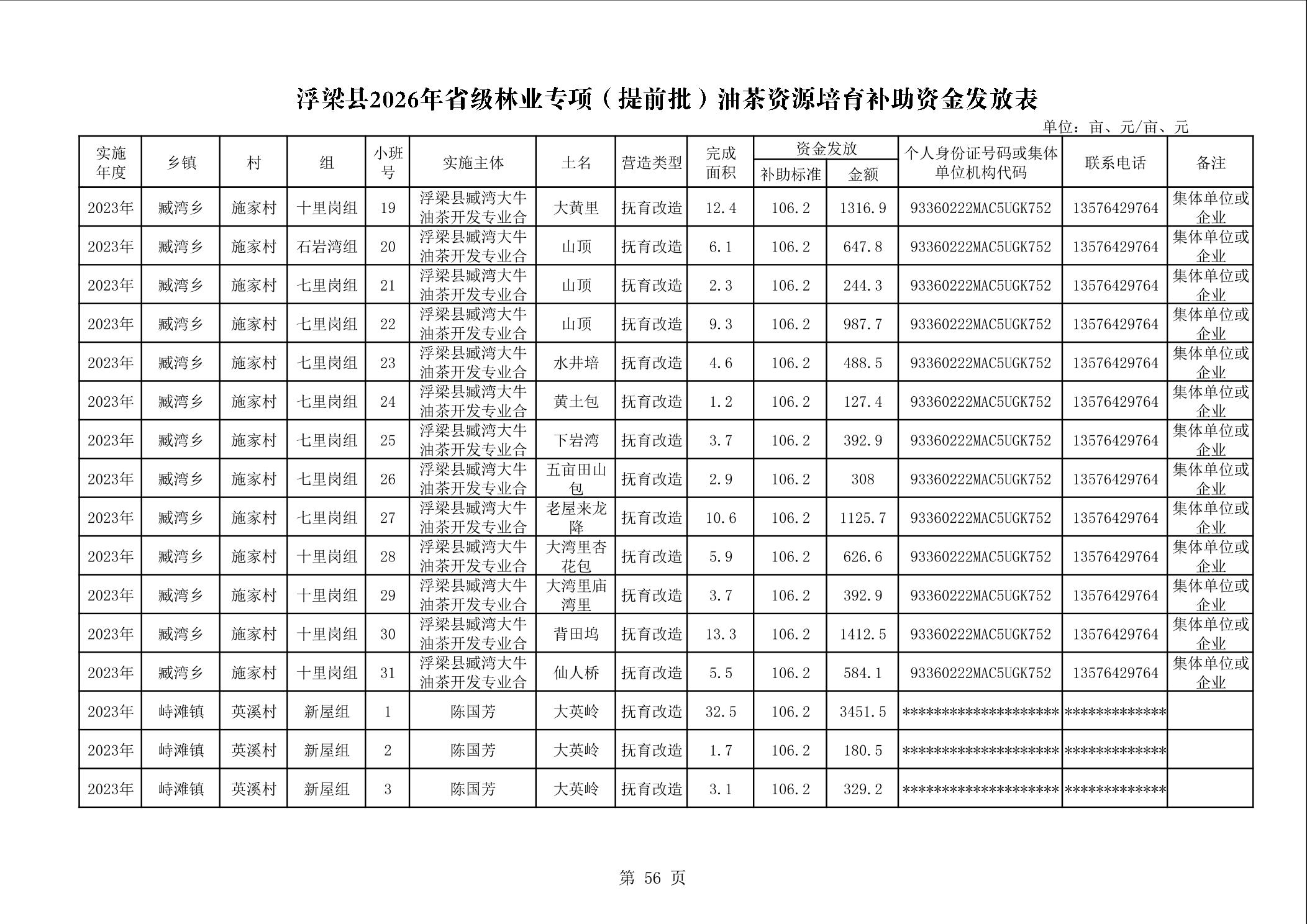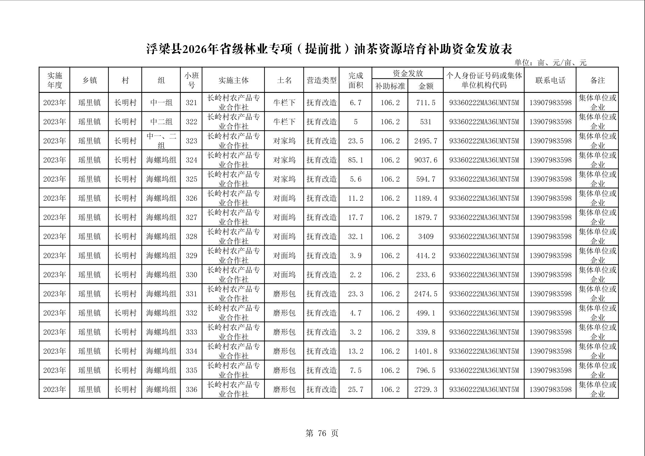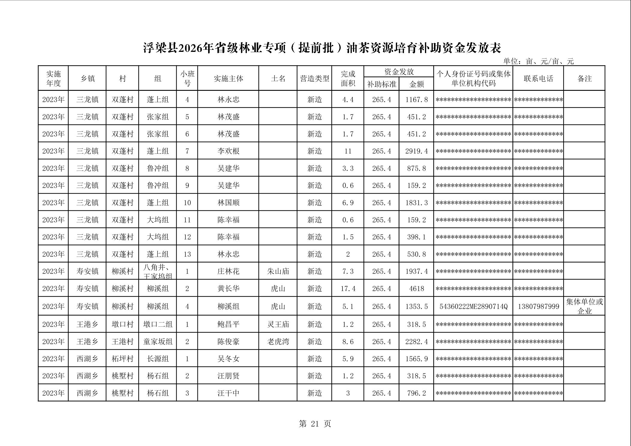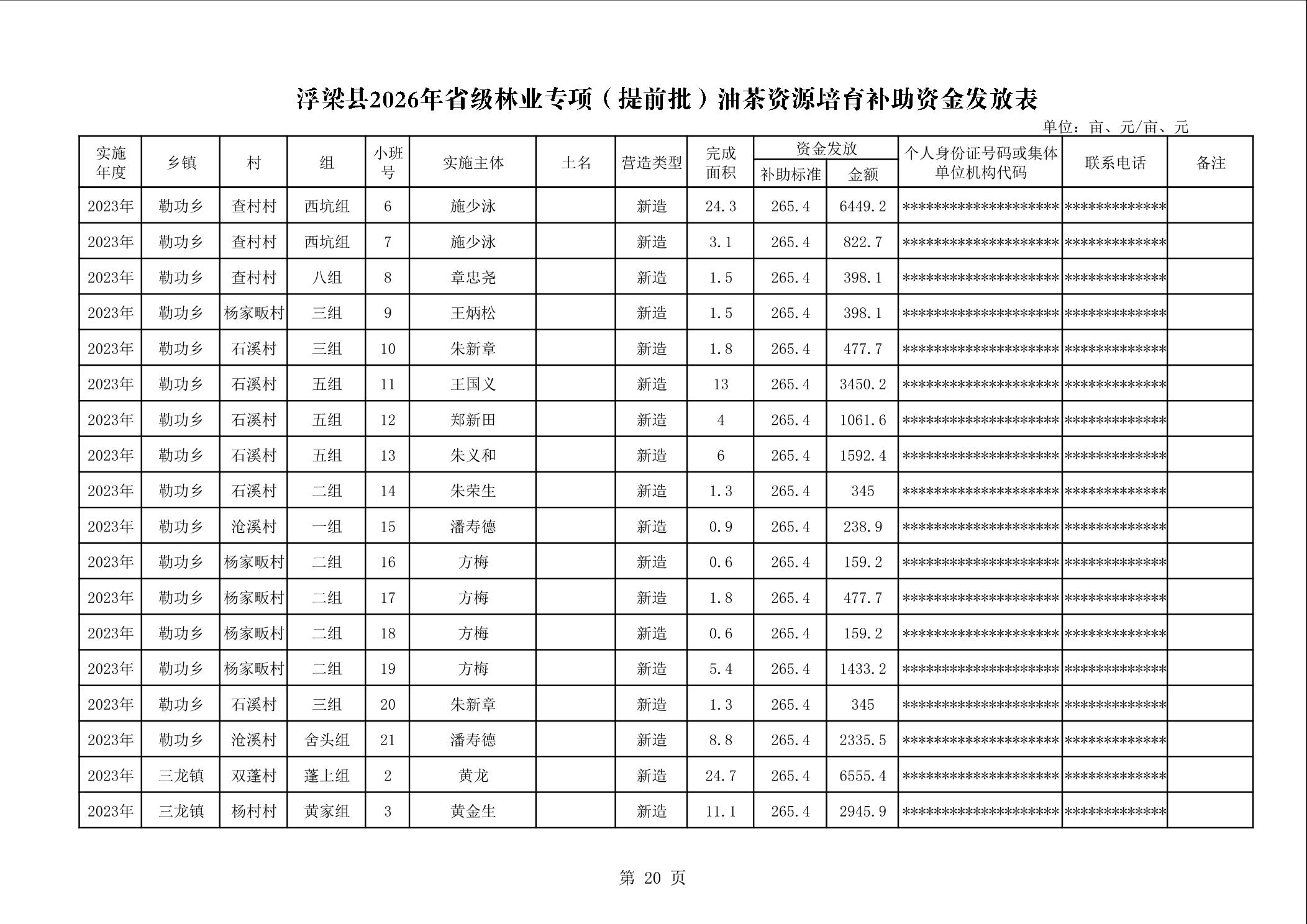 关于下达浮梁县2026年度省级林业专项(提前批)油茶资源培育补助资金的通知(浮财建指【2026】9号)
