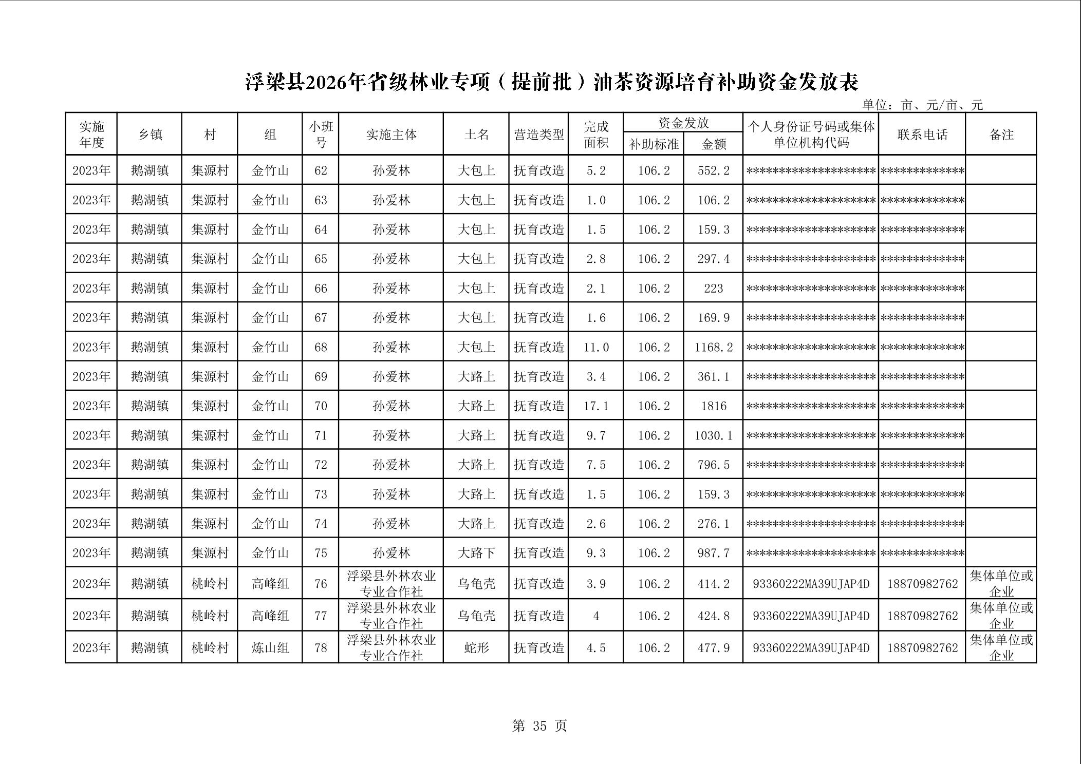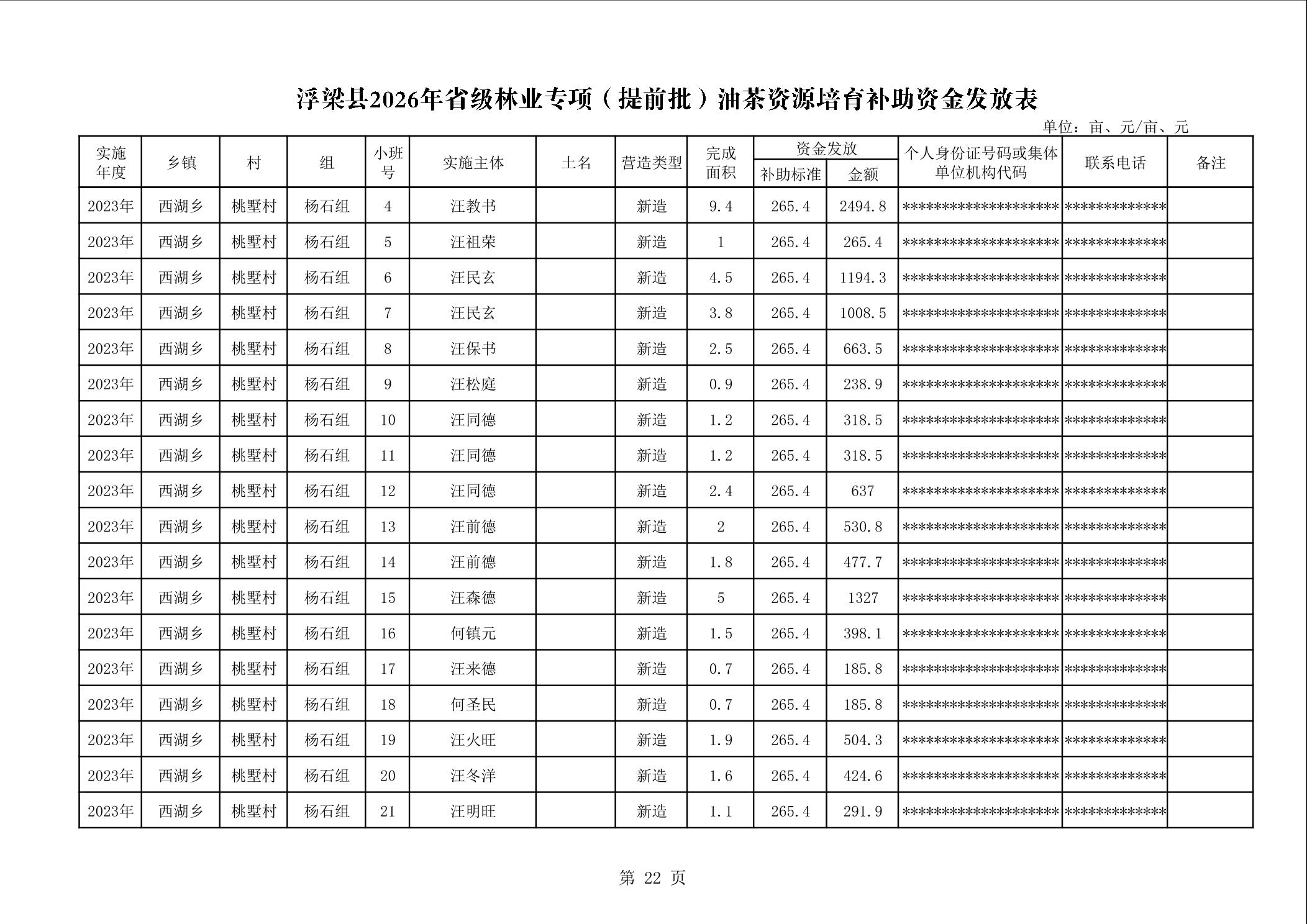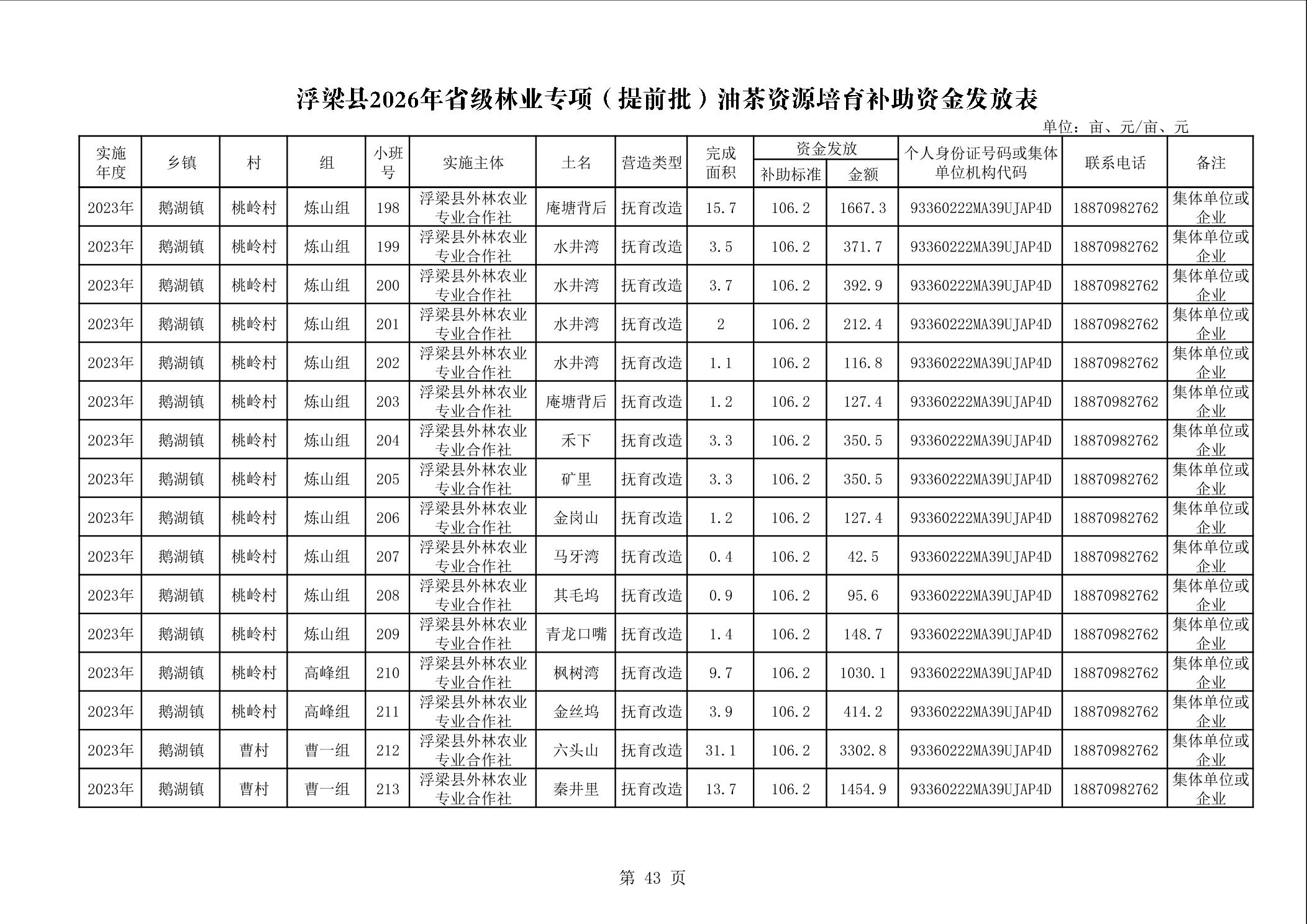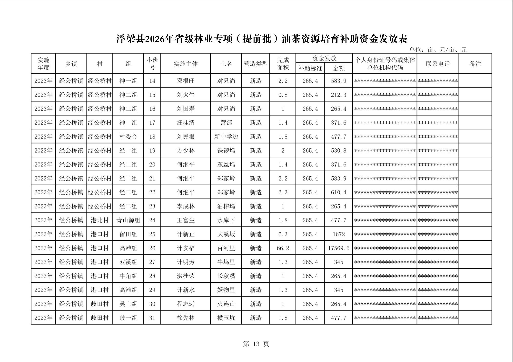 关于下达浮梁县2026年度省级林业专项(提前批)油茶资源培育补助资金的通知(浮财建指【2026】9号)