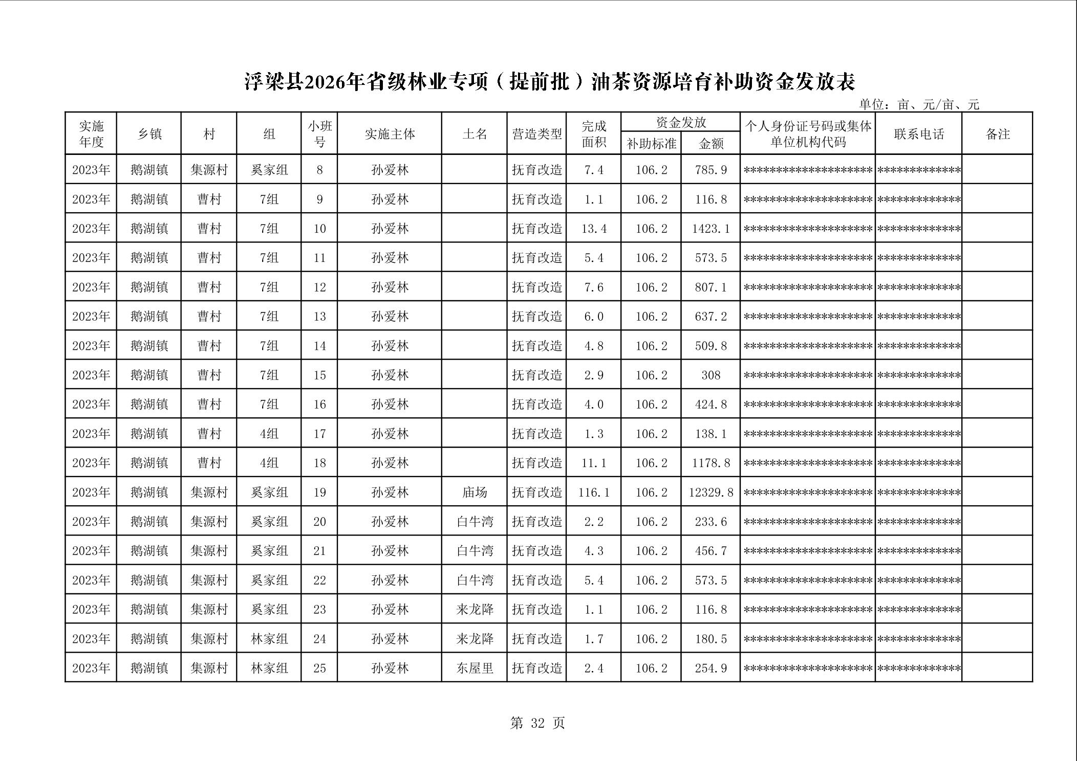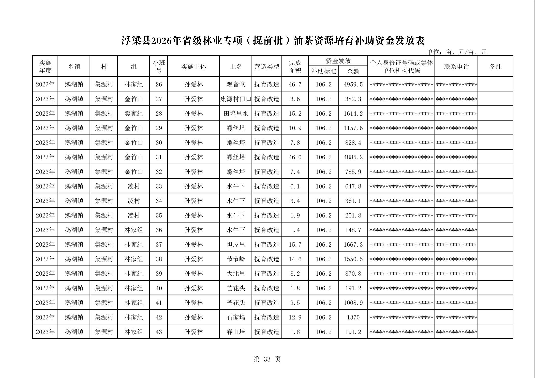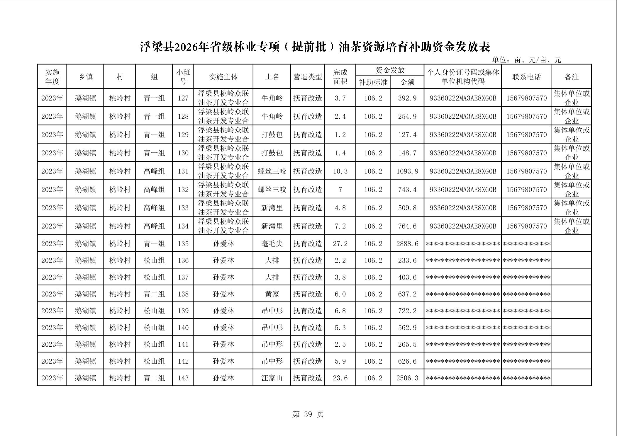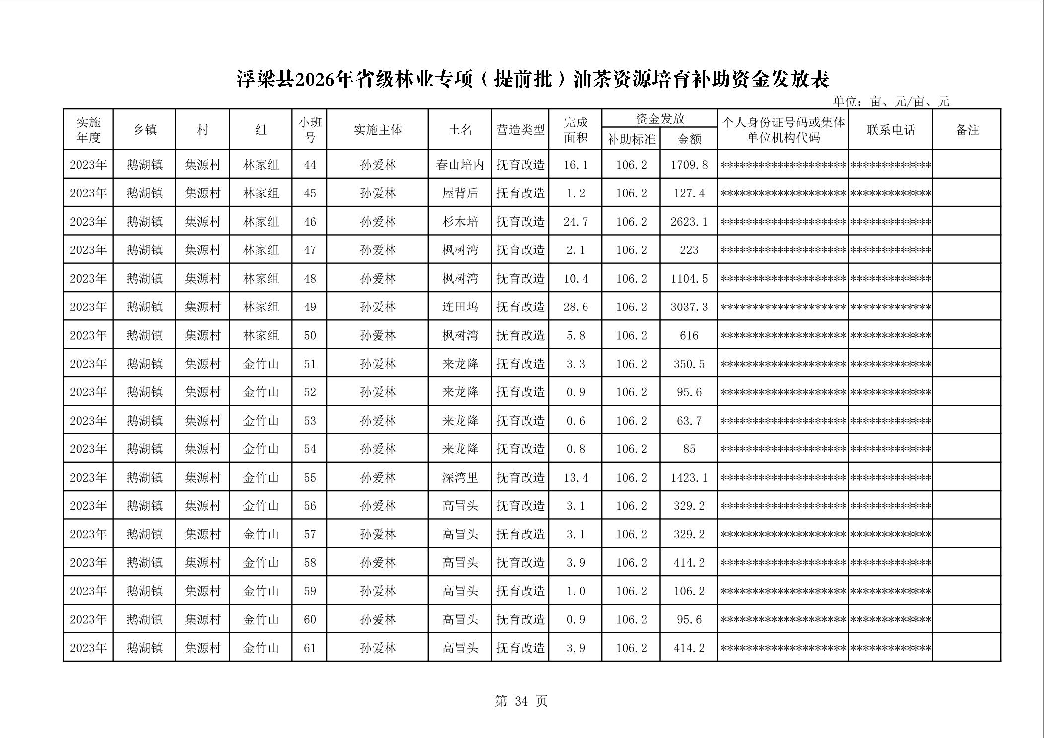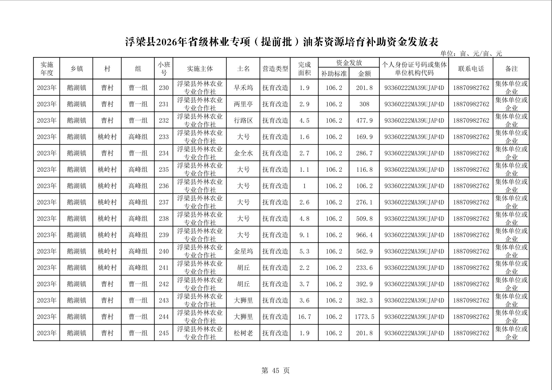 关于下达浮梁县2026年度省级林业专项(提前批)油茶资源培育补助资金的通知(浮财建指【2026】9号)
