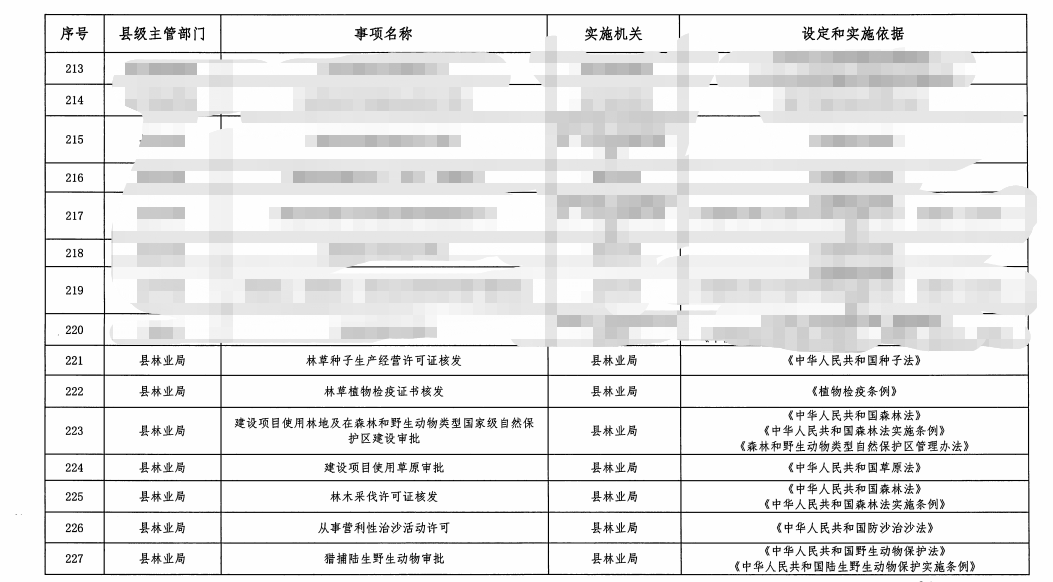 县林业局行政许可清单