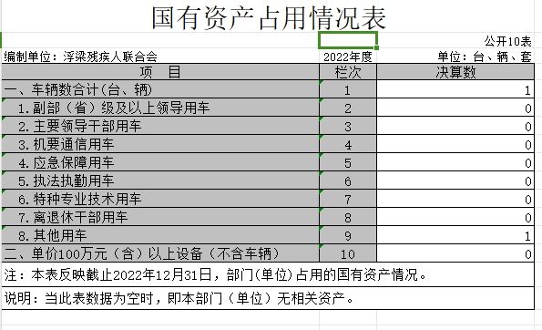 截止2022年12月31日,本单位国有资产占用情况见公开10表《国有资产占用情况表》。其中车辆中的其他用车主要是单位其他用车[下乡用车]。
