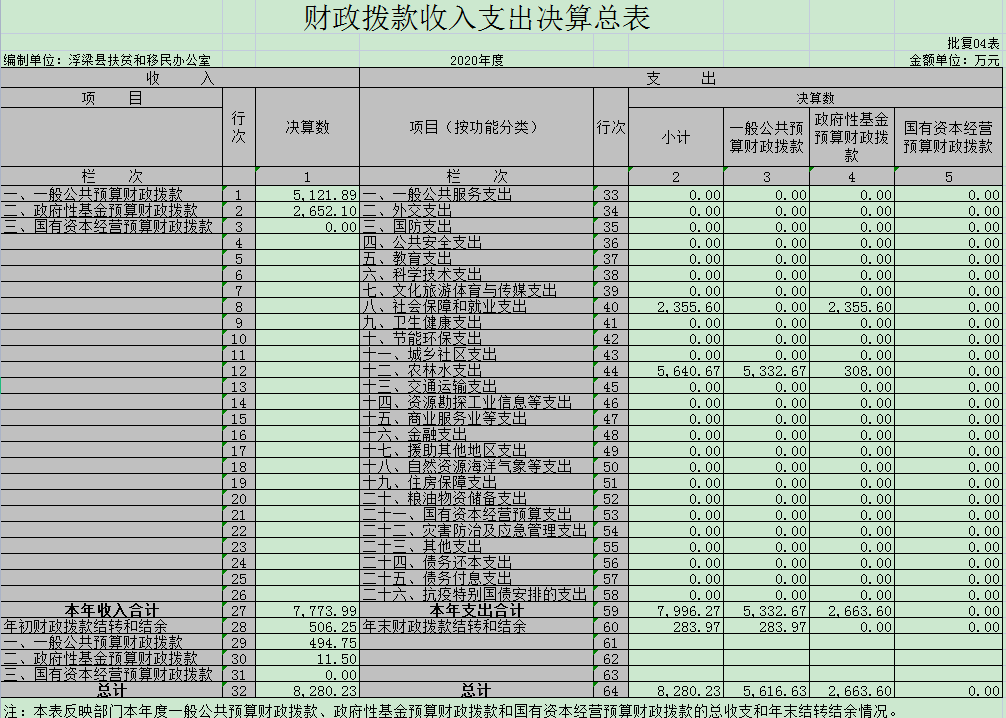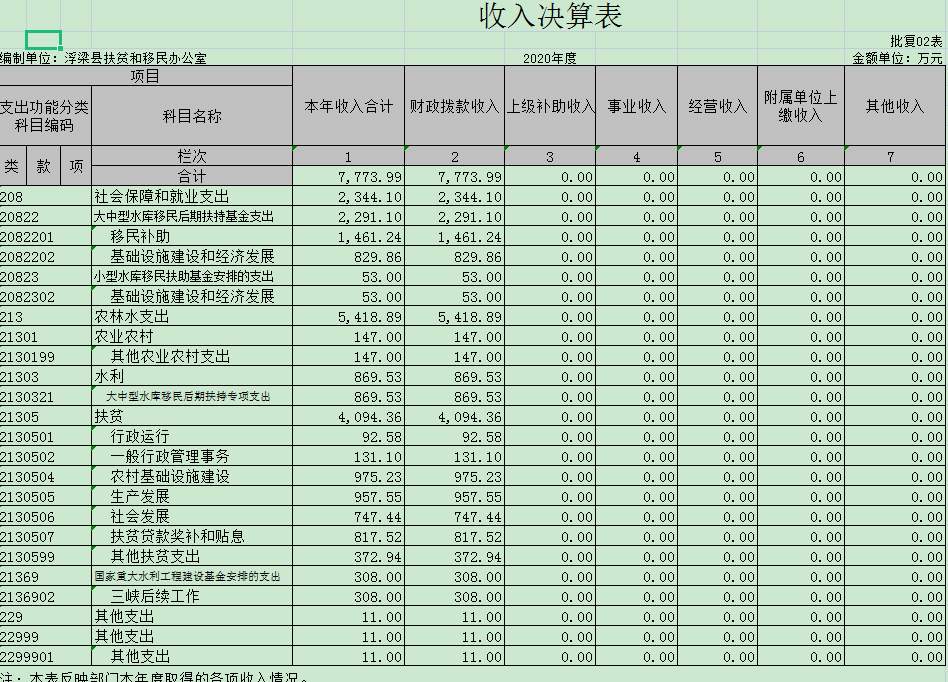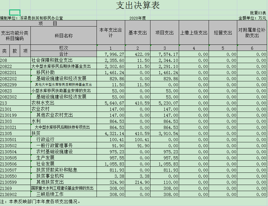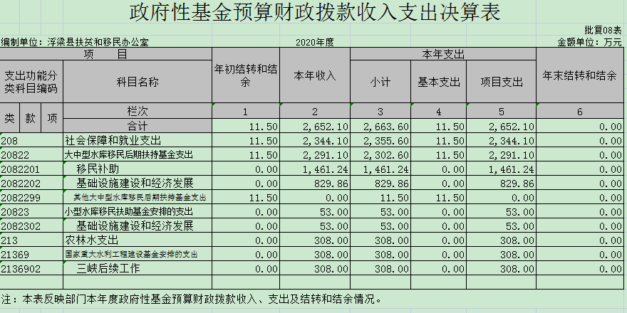 本部门2021年度支出总计8127.786944万元,其中本年支出合计7842.963569万元,较2020年增加352.953569万元,增长4.71 %,主要原因是:项目含有移民项目资金;年末结转和结余 0.8541万元,较2020年减少283.1159万元,下降99.97 %,主要原因是:上年度结余为扶贫项目资金,已在本年度全部支出。