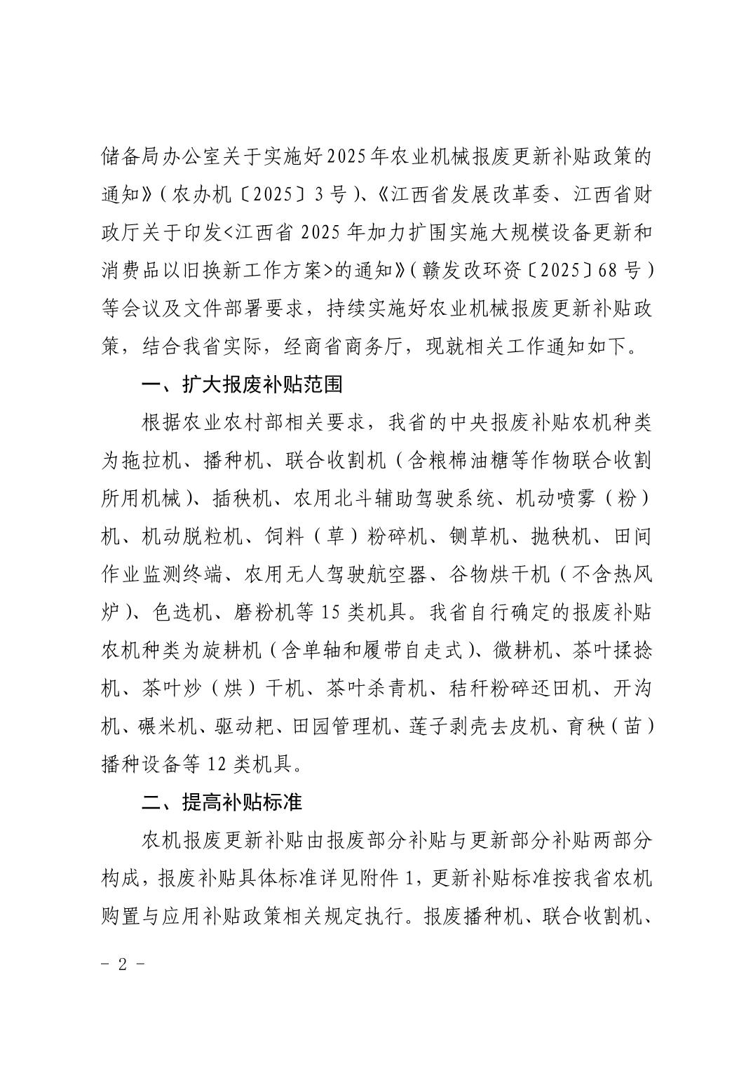 关于实施好2025年农业机械报废更新补贴政策的通知