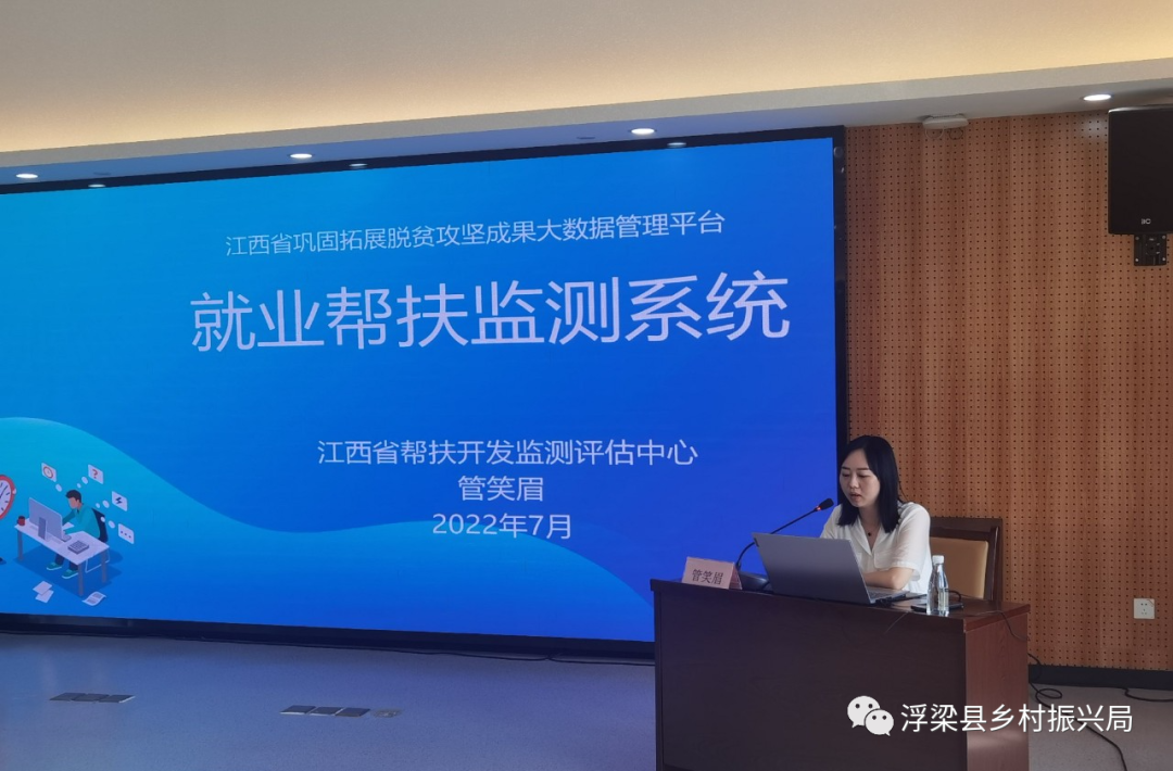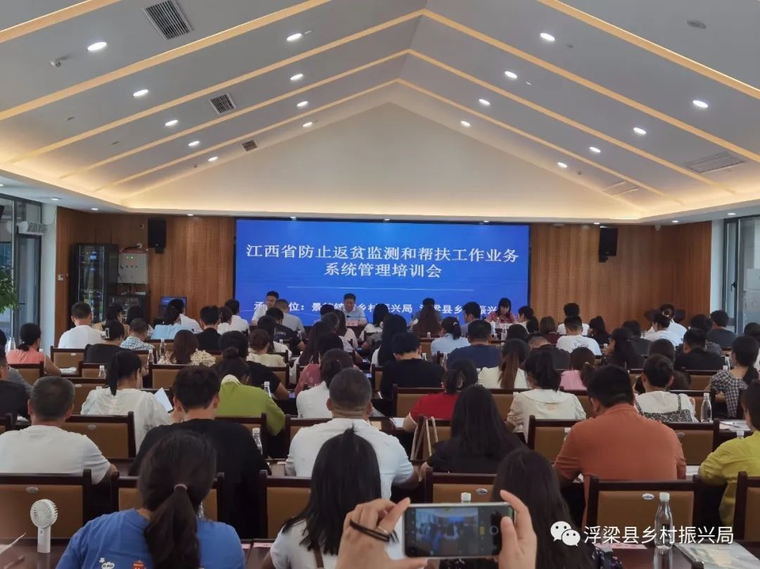 7月21日至22日,全省防止返贫监测和帮扶工作业务系统管理培训会在浮梁县召开,省乡村振兴局帮扶开发监测评估中心主任宗培出席开班仪式并讲话, 市乡村振兴局党组成员、副局长叶凯主持,浮梁县副县长谢杰致辞,县政协副主席、乡村振兴局党组书记、局长刘继莲,省乡村振兴局帮扶开发监测评估中心各业务骨干,景德镇市乐平市、浮梁县、昌江区、珠山区4个县(市、区)相关业务人员共计100余人参加。