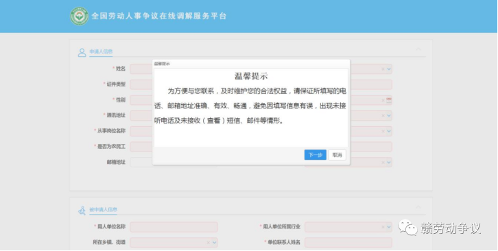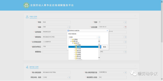 第一步:登录平台进入“劳动者申请调解”板块,申请调解。当事人可输入网址http://223.71.147.149/portal或用手机微信、QQ扫描二维码进入调解服务平台首页,进行调解申请和查看案件办理进度。