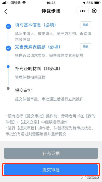 第三步点击开始仲裁,填写相关信息及证据,如下图: