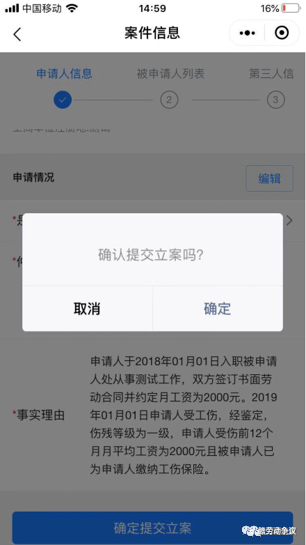 第五步:提交审批后,弹出确定提交立案,如下图: