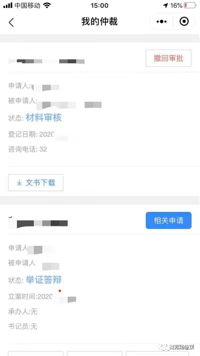 第八步:申请仲裁信息填写完毕,案件已提交至指定的仲裁机构进行审核,在我的仲裁界面可查看案件的审核阶段,如下图: