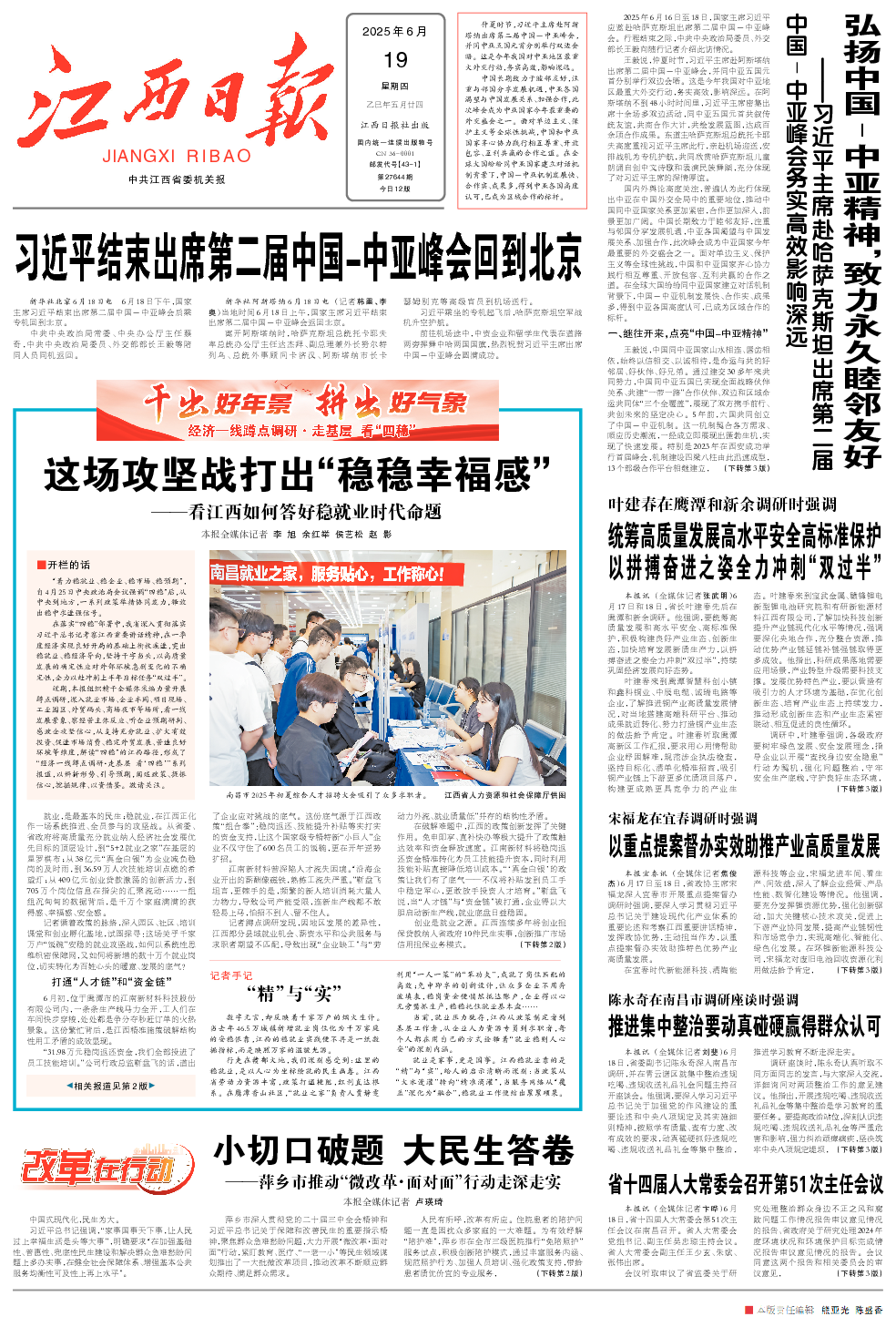 近期,本报组织精干全媒体采编力量开展蹲点调研,深入就业市场、企业车间、项目现场、工业园区、外贸码头、商场夜市等场所,看一线发展景象、察经营主体反应、听企业预期研判、感政企攻坚信心,从支持充分就业、扩大有效投资、促进市场消费、稳定外贸发展、营造良好环境等维度,解读“四稳”的江西路径,形成了“经济一线蹲点调研·走基层看‘四稳’”系列报道,以辨析形势、引导预期,阐述政策、提振信心,挖掘规律、以资借鉴。敬请关注。