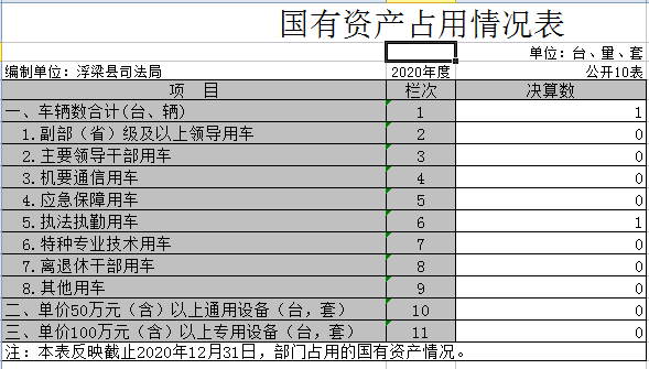 截止2020年12月31日,本部门(单位)国有资产占用情况见公开10表《国有资产占用情况表》。本部门共有车辆1辆,为执法执勤用车。