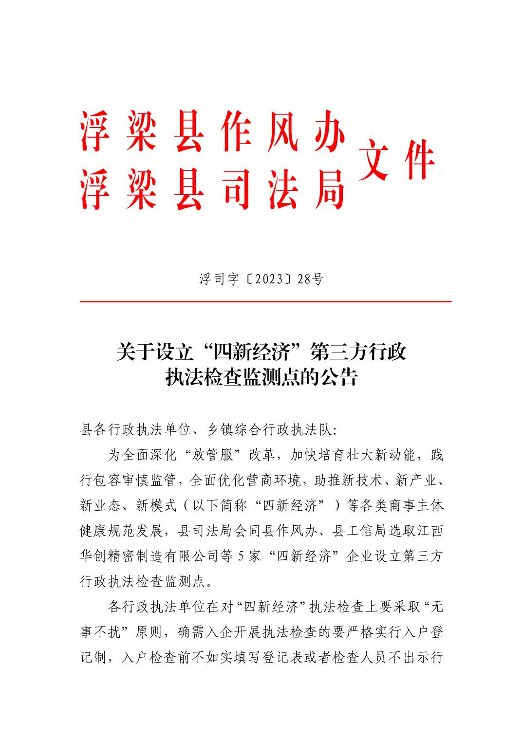 关于设立“四新经济”第三方行政执法检查监测点的公告