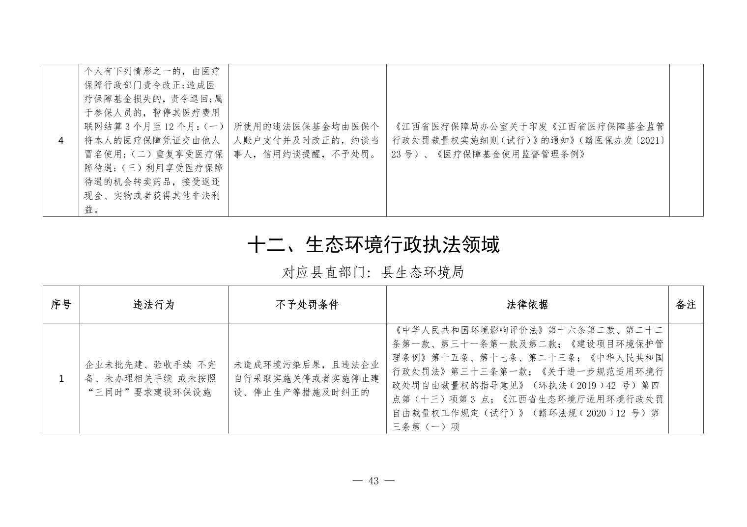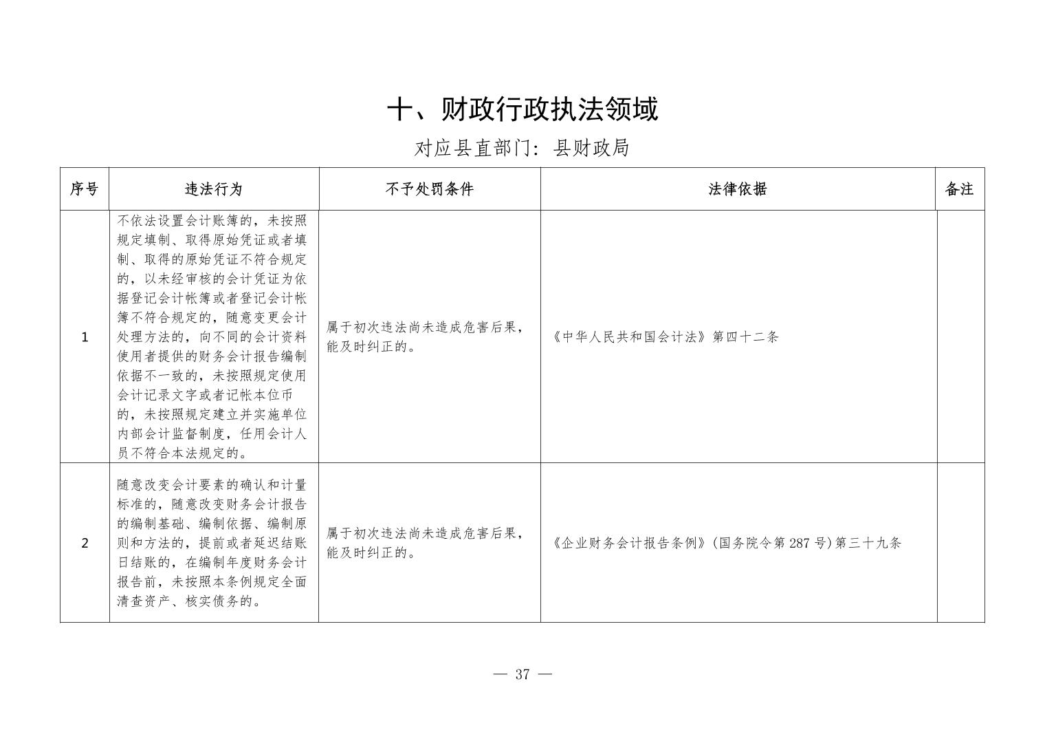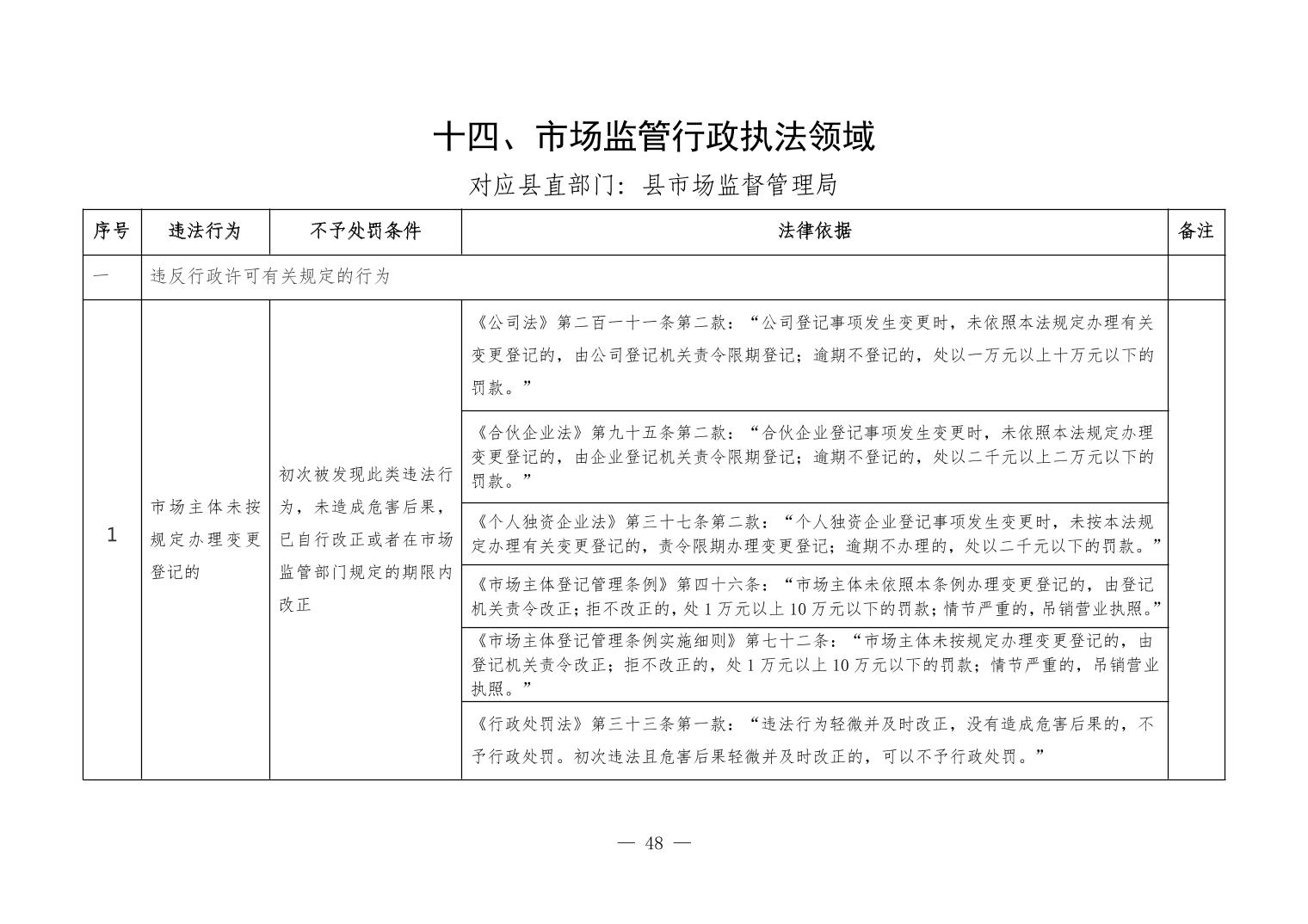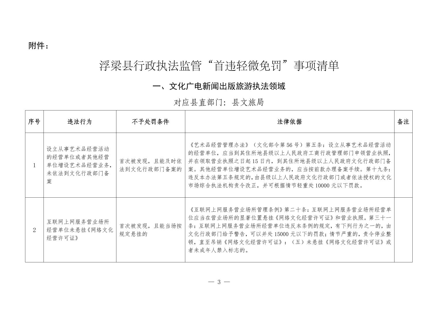 《浮梁县行政执法监管“首违轻微免罚”事项清单》