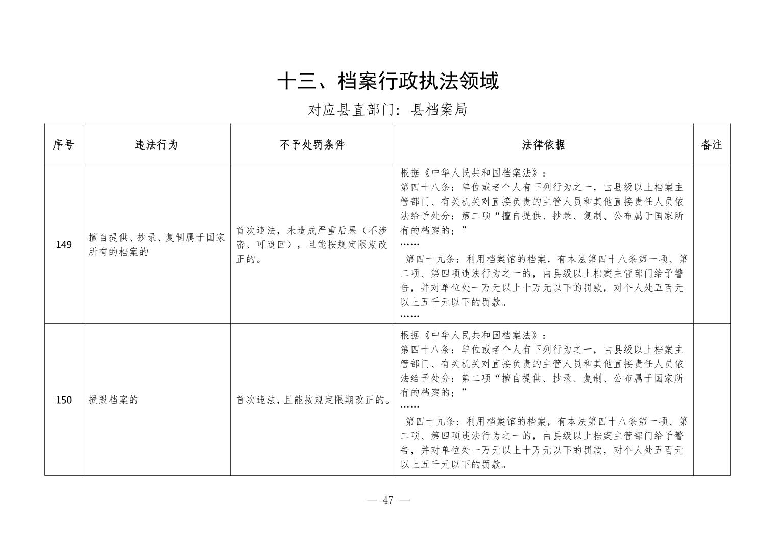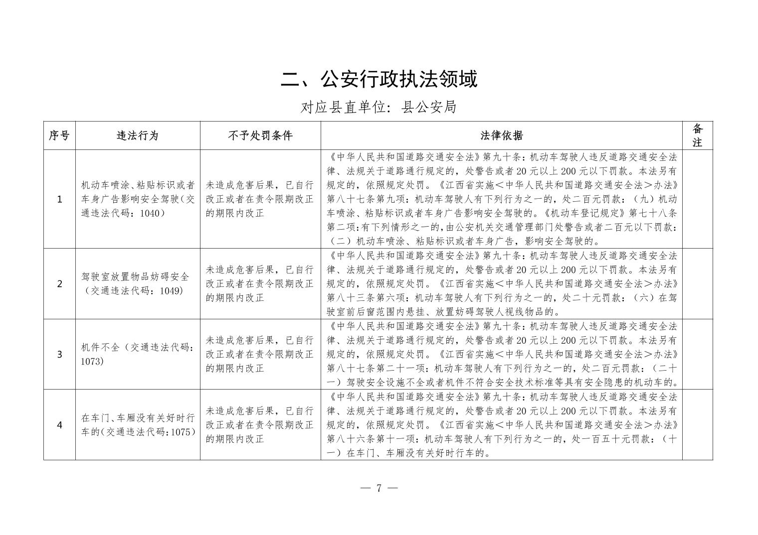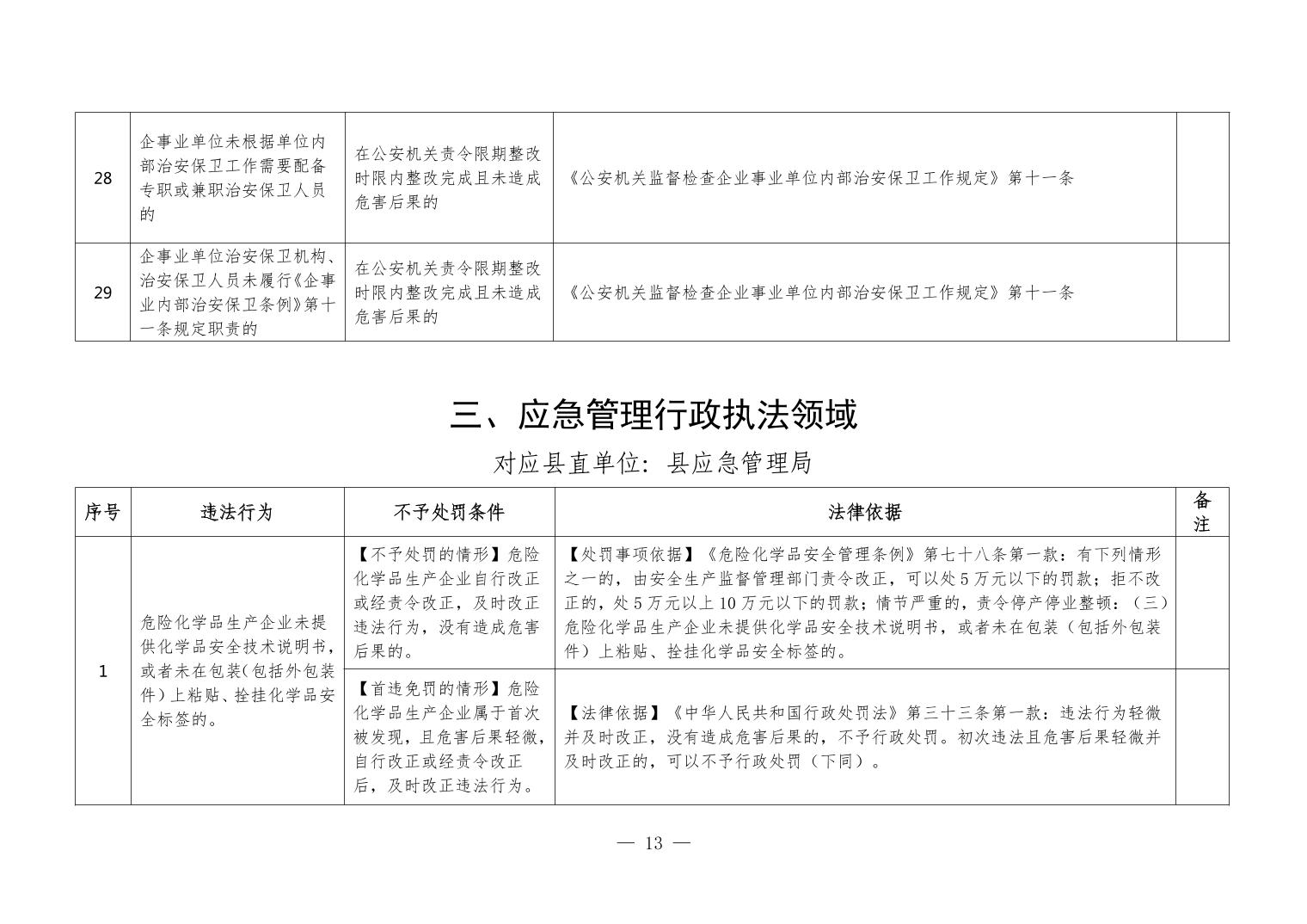 《浮梁县行政执法监管“首违轻微免罚”事项清单》