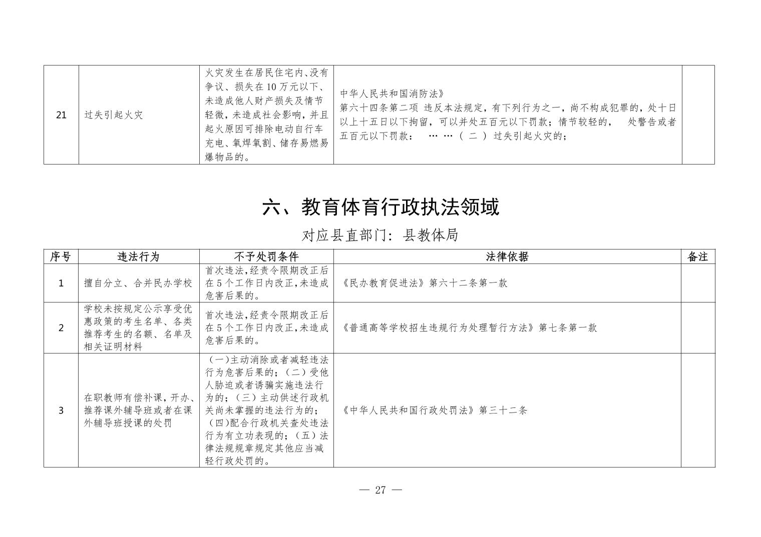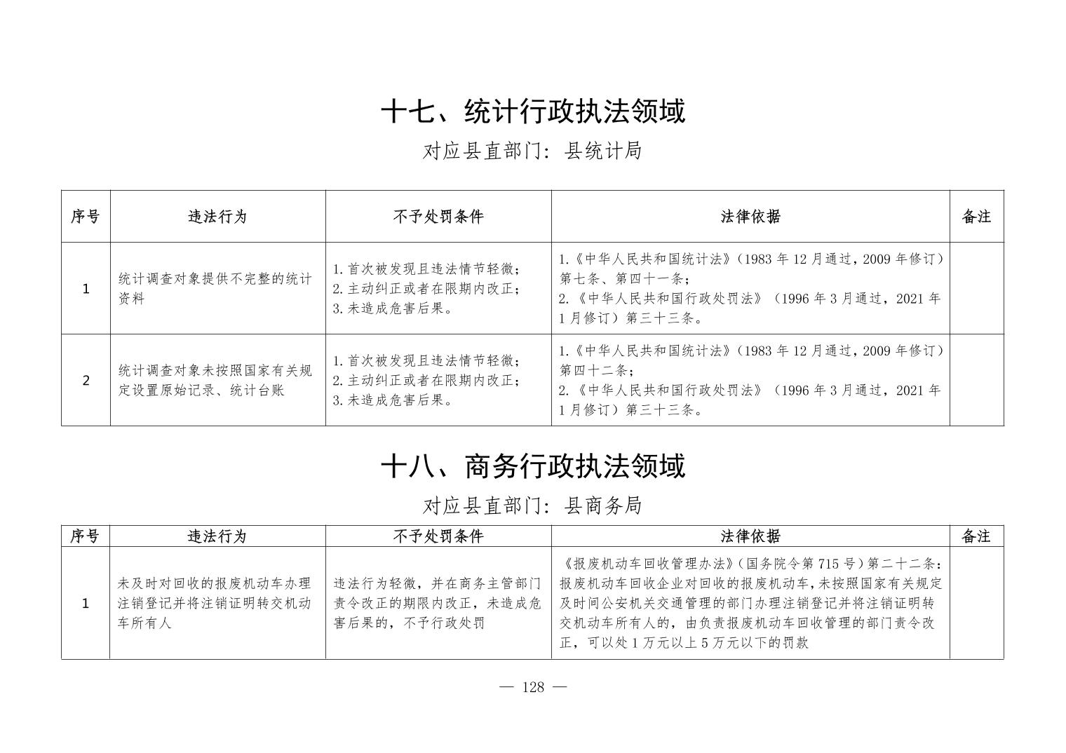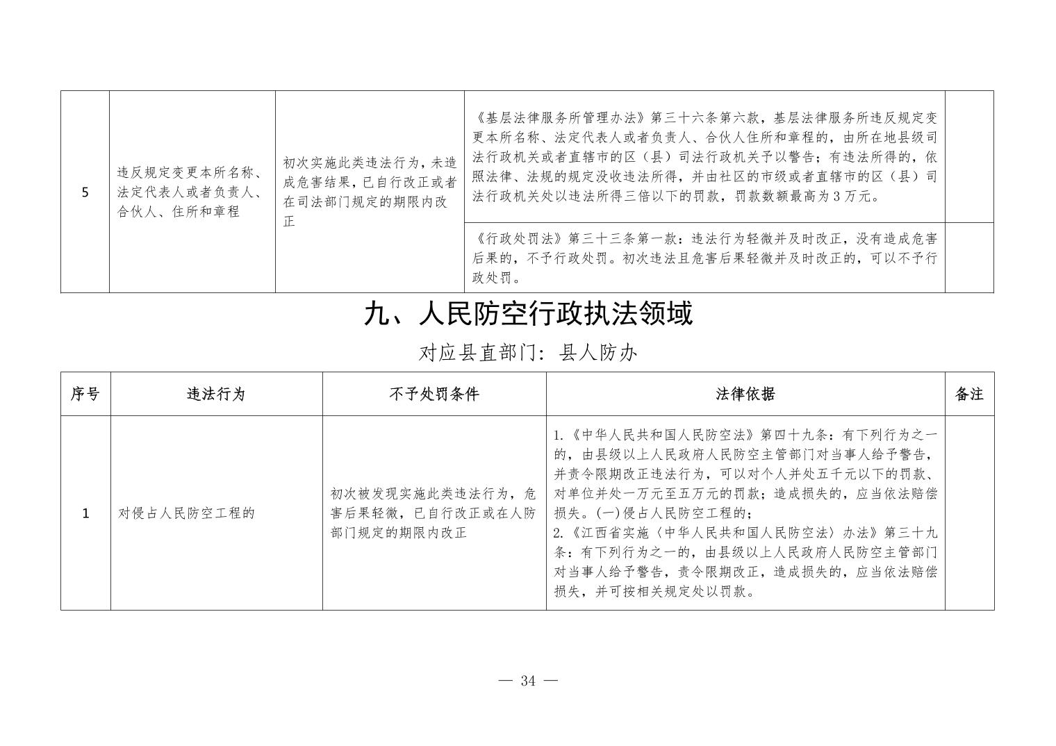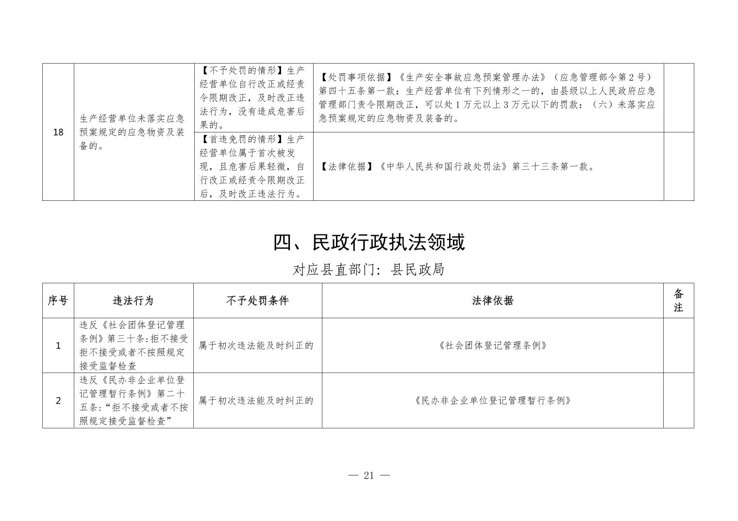 《浮梁县行政执法监管“首违轻微免罚”事项清单》