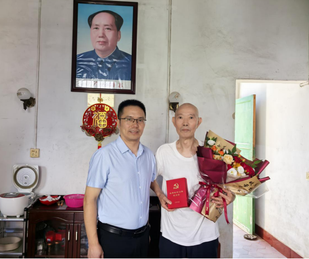 "七一"前夕,瑞金市审计局党组深入身体不便的老党员家中,向党龄达到五十周年的老党员敬献鲜花,并庄重颁授“光荣在党50年”纪念章,关切询问他们的身体状况和生活情况,认真聆听他们的奋斗往事,表达了党组织对老党员们的崇高敬意与衷心感谢。