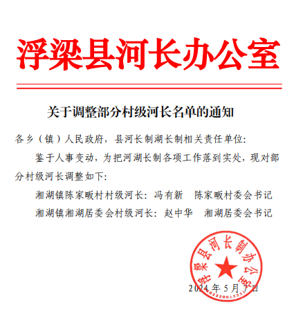 关于调整部分村级河长名单的通知