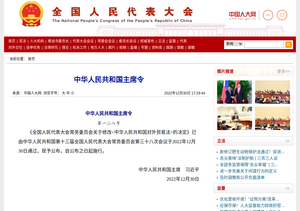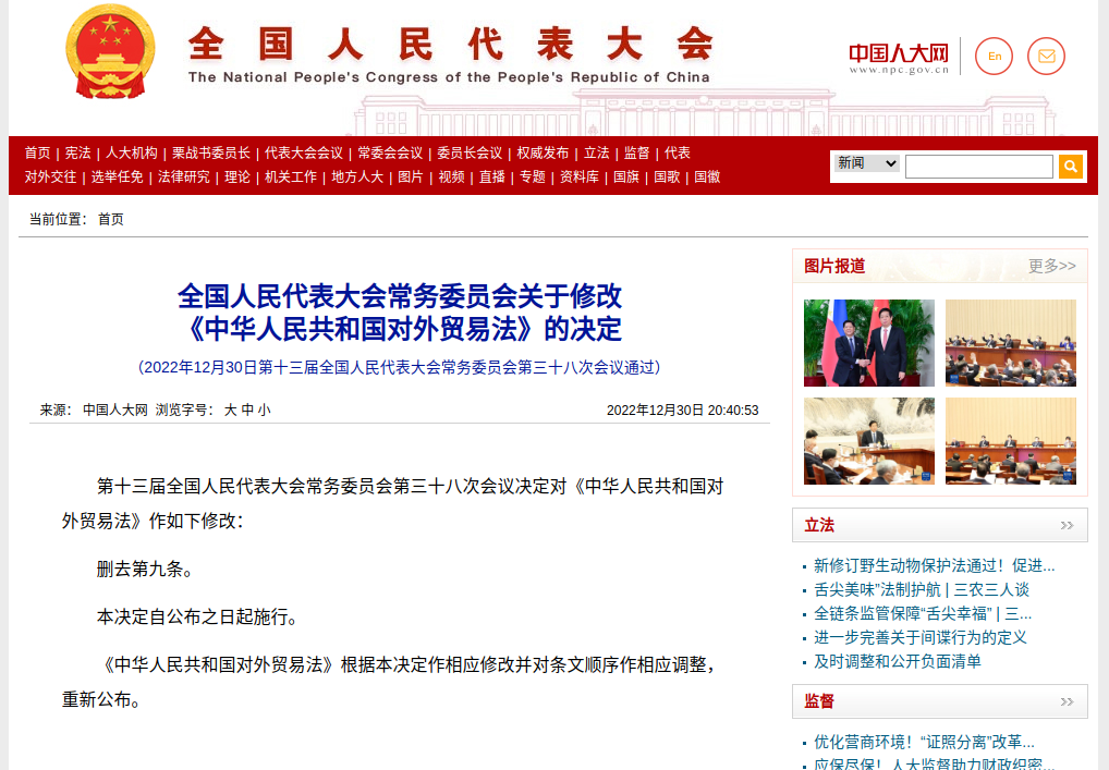 根据2022年12月30日全国人民代表大会常务委员会关于修改《中华人民共和国对外贸易法》的决定,即日起从事货物进出口或者技术进出口的对外贸易经营者无需办理备案登记。具体内容详见: