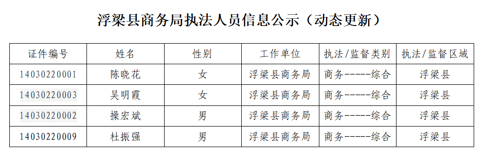 浮梁县商务局执法人员信息公示(动态更新)