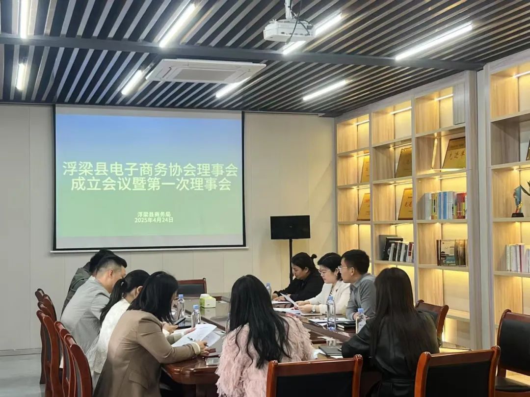 2025年4月24日,浮梁县电子商务协会理事会成立会议暨第一次理事会在县商务局会议室召开。会议由浮梁县商务局、浮梁县民政局指导,全县10余家电商企业代表参会。