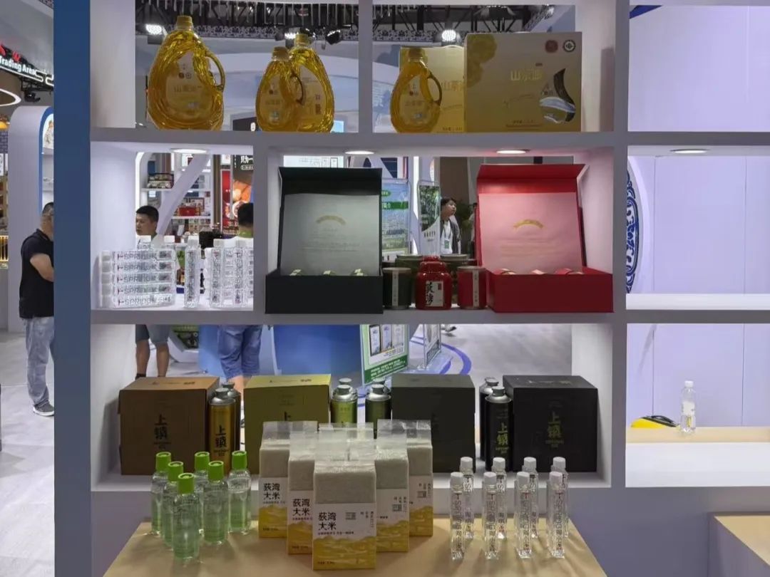 浮梁荻湾乡村振兴有限公司:聚焦生态农业成果,展示的有机大米、冷榨茶油、精酿啤酒等特色产品,从种植到加工全程贯彻绿色理念,生动诠释了乡村振兴的丰硕成果,是浮梁“生态底色”的最佳代言。