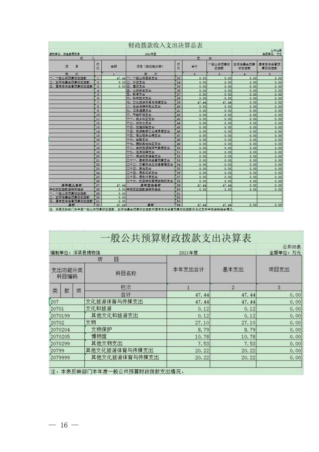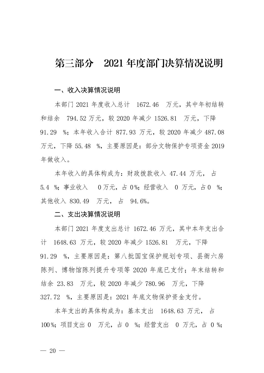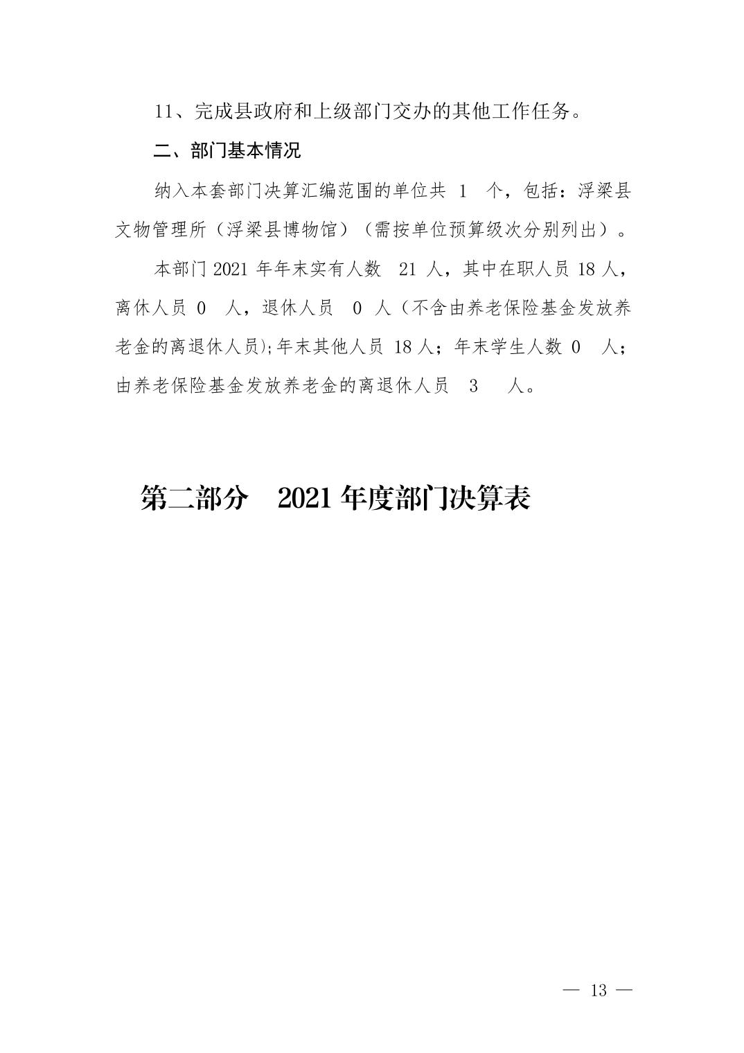 2021年决算公开浮梁县文物管理所(浮梁县博物馆)