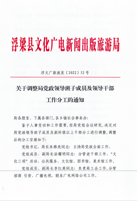 关于调整局党政领导班子成员及领导干部工作分工的通知