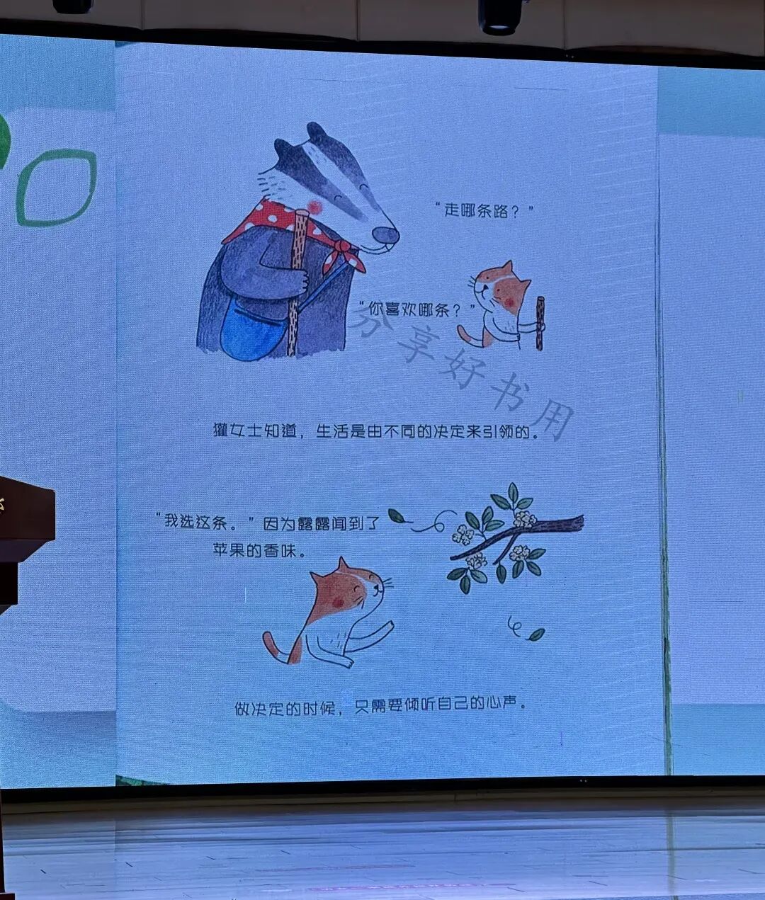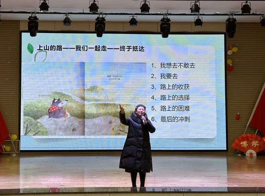 谢莹老师作为一名分享阅读的公益倡导者,从《上山的路》的图画书开始分享,通过引人入胜的词语,一步一步地带我们走进獾女士与猫先生上山路的美丽沿途的风景以及走进它们的内心世界。