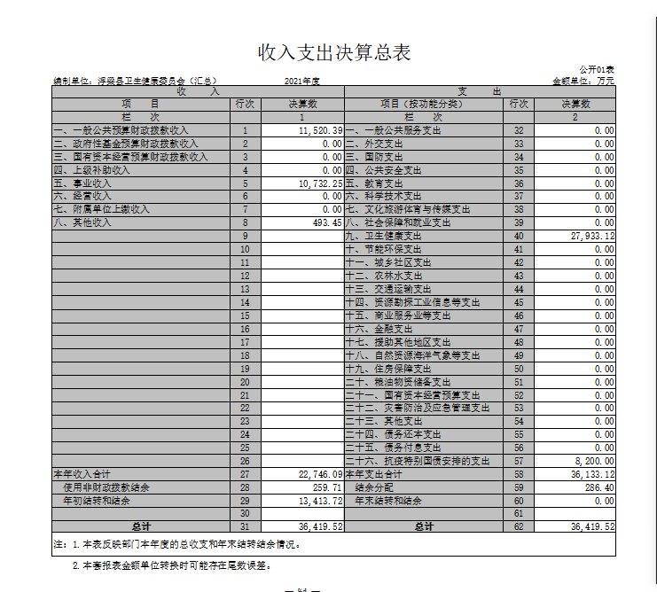 本部门2021年度收入总计 36419.52万元,其中年初结转和结余13673.44万元,较2020年33928.81万元增加2490.71万元,增长7.34 %;本年收入合计 22746.08万元,较2020年30109.01万元减少7362.93万元,减少24.45%,主要原因是:因为2020年新增了抗疫国债-国联医技大楼建设资金8200万以及2300多万疫情防控项目资金、导致2021年资金占比下降。