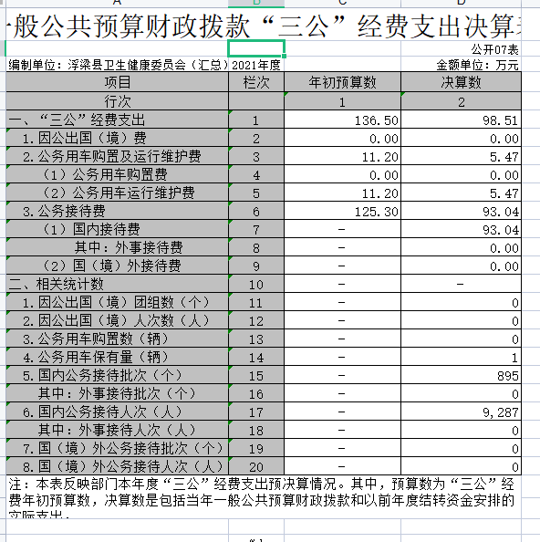 (四)“三公”经费:反映财政拨款安排的因公出国(境)费、公务用车购置及运行费和公务接待费。其中,因公出国(境)费反映单位公务出国(境)的国际旅费、国外城市交通费、住宿费、伙食费、培训费、公杂费等支出;公务用车购置及运行费反映单位公务车辆购置支出(含车辆购置税)及租用费、燃料费、维修费、过桥过路费、保险费、安全奖励费用等支出;公务接待费反映单位按规定开支的各类公务接待(含外宾接待)支出。