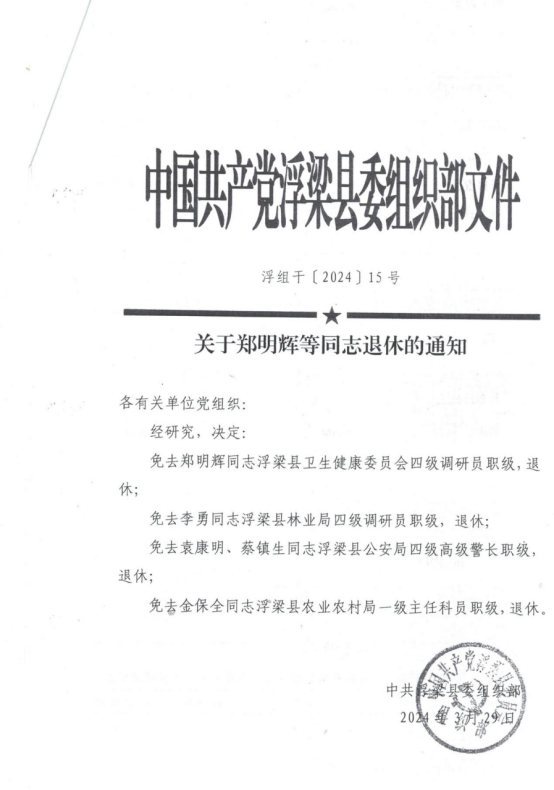 浮梁县卫生健康委领导退休信息