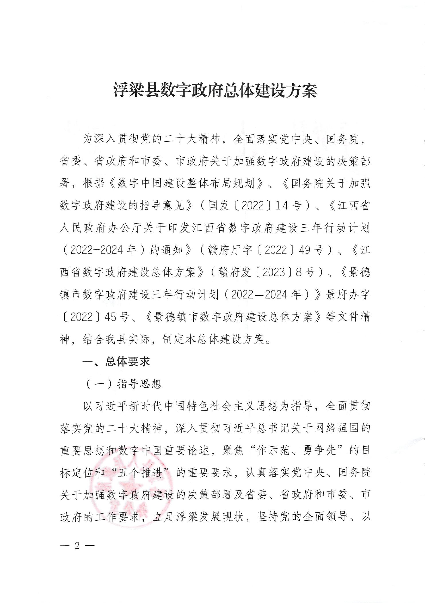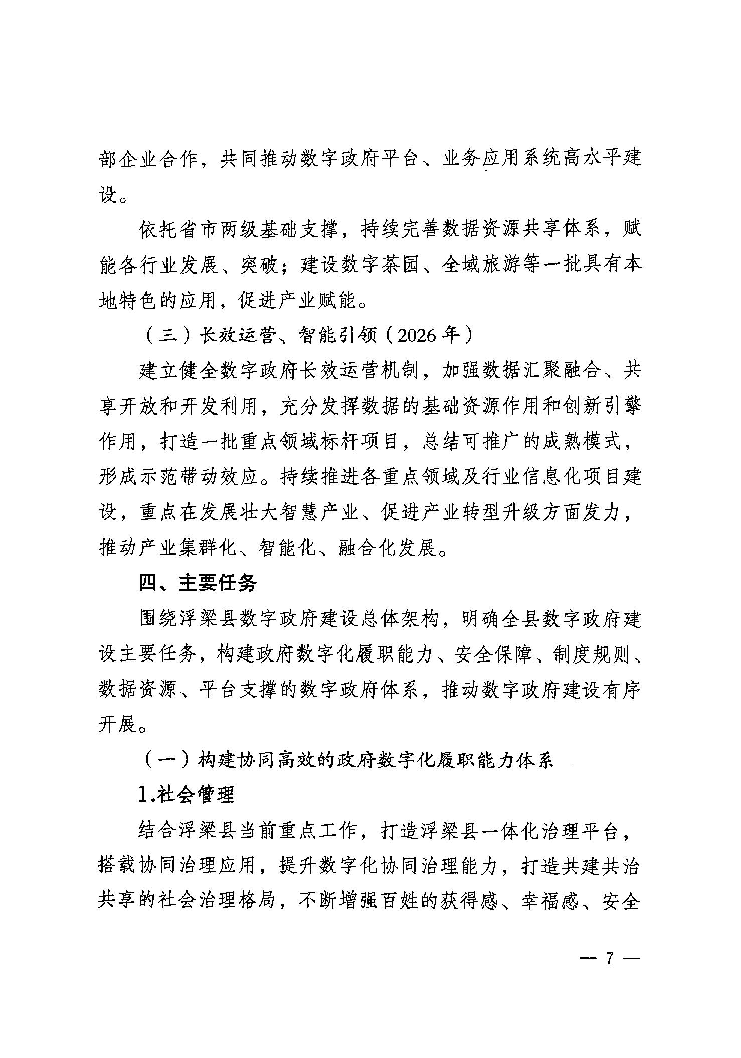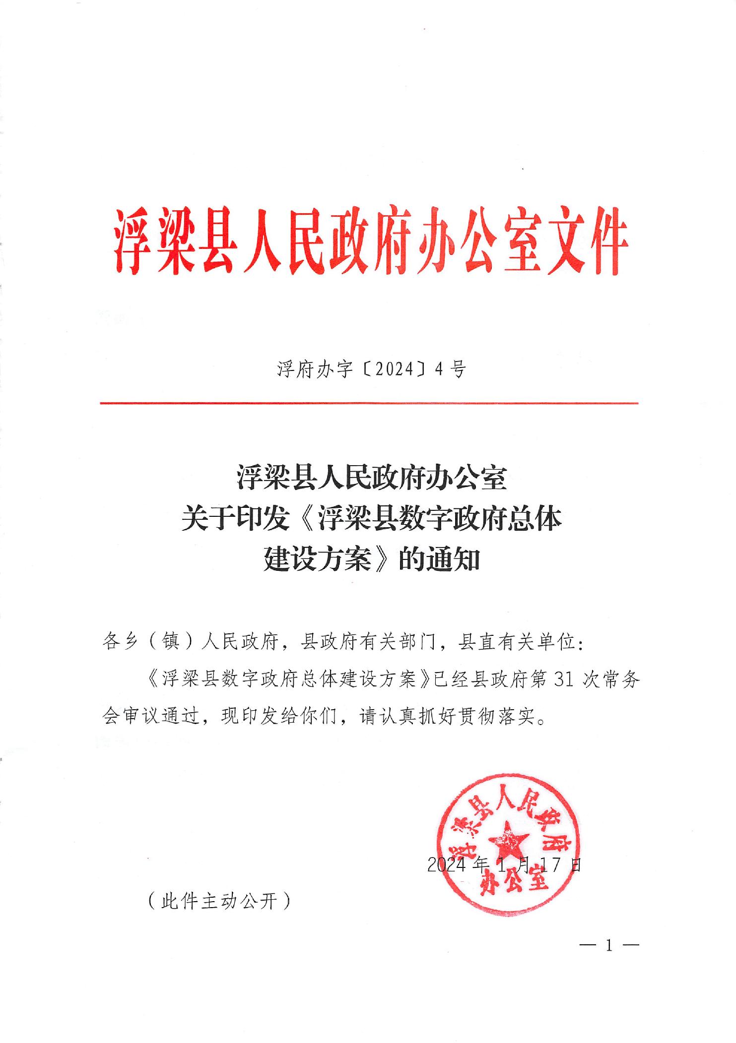 浮梁县人民政府办公室关于印发《浮梁县数字政府总体建设方案》的通知
