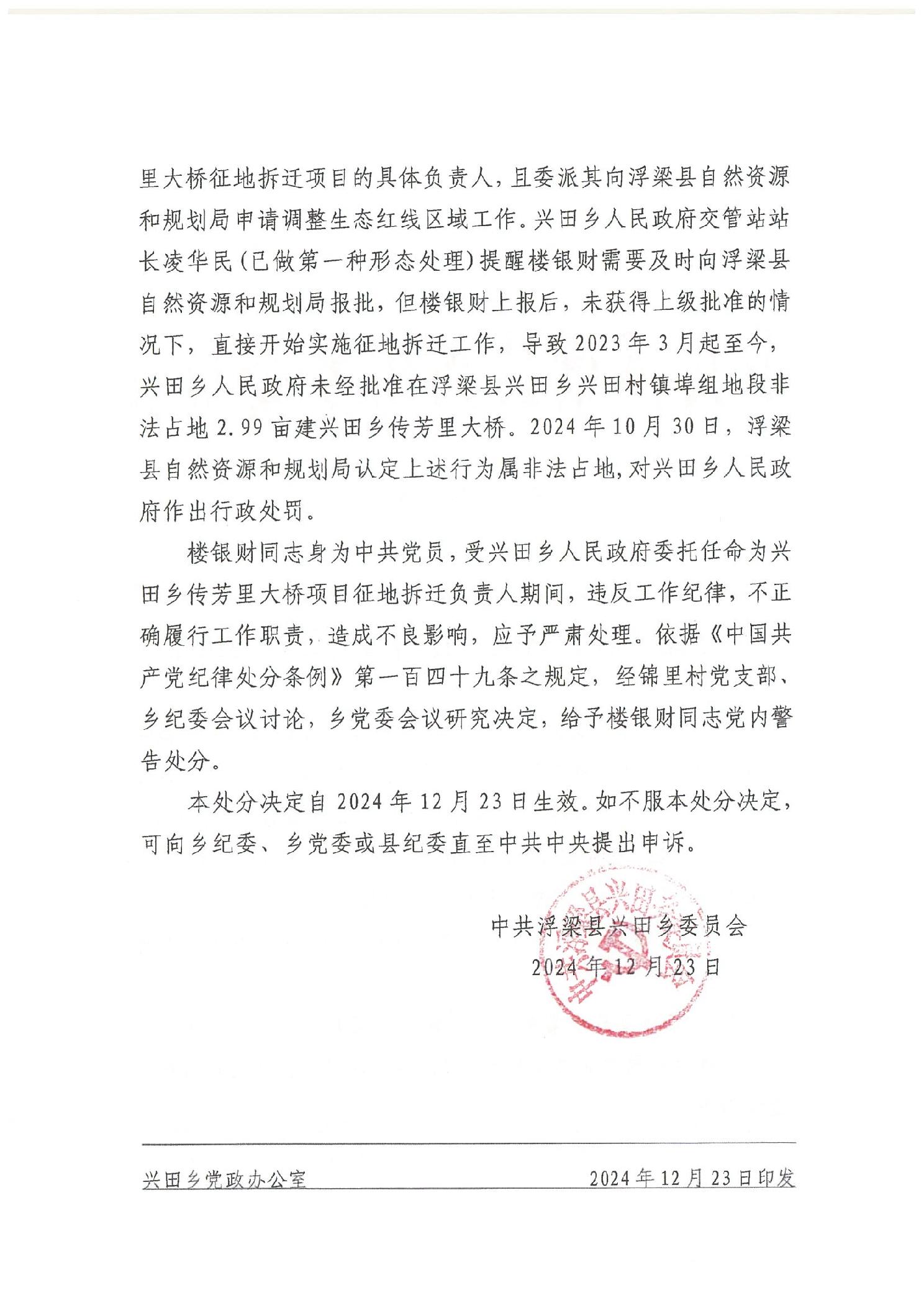 浮梁县自然资源和规划局行政处罚决定书 浮自然资规罚决字【2024】9号