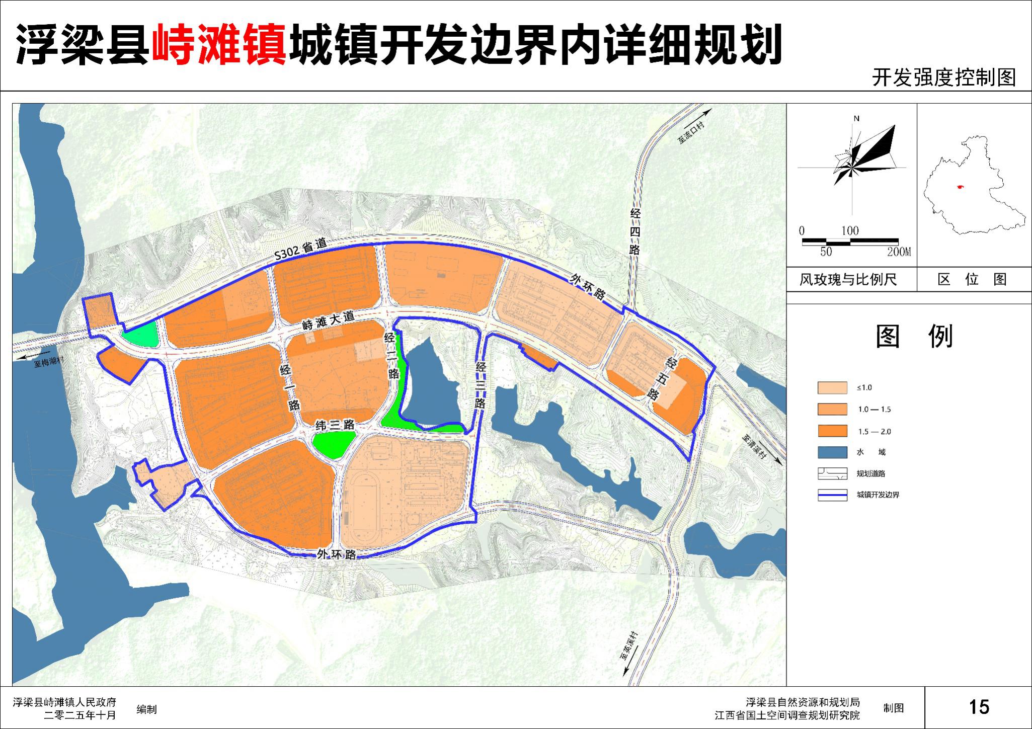 设定三类开发建设强度分区,分别为低强度开发区、中低强度开发区、中强度开发区。地块开发强度在地块图则中具体确定。低强度开发区容积率0—1.0,主要为公共服务设施用地、农村宅基地、公用设施用地等。中低强度开发区容积率1—1.5,主要包括城镇住宅用地等。中强度开发区容积率1.5-2.0,主要为商业用地等。其余保留现状,如涉及改造或重建时,指标应以《江西省城市规划管理技术导则(2024版)》为准。