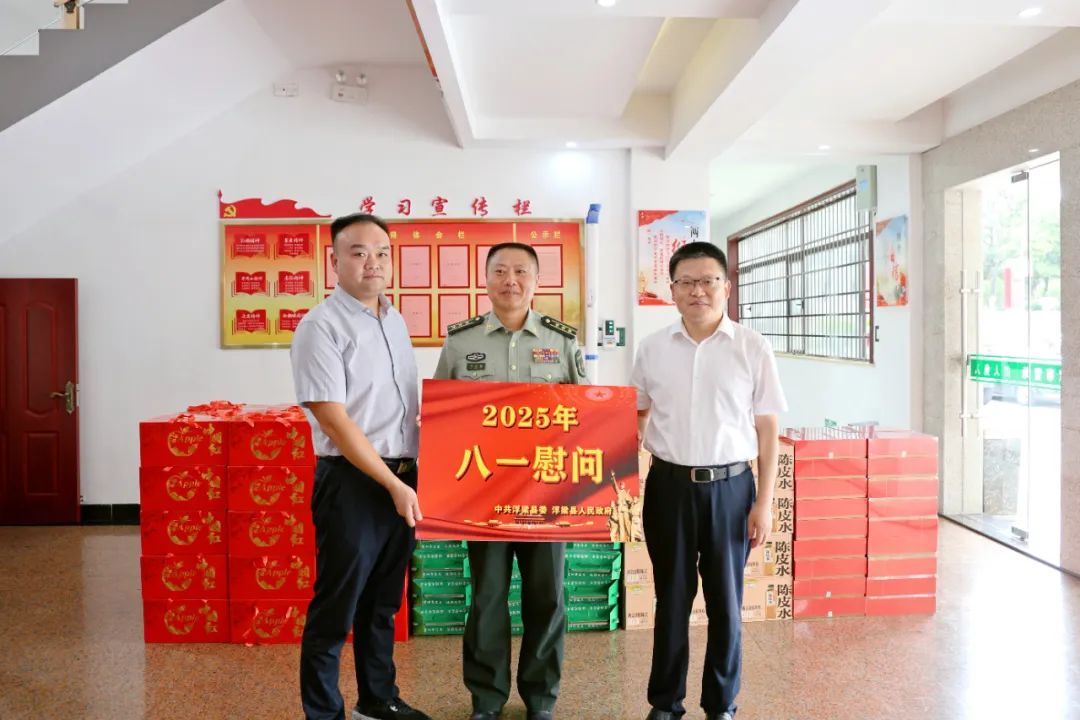 “八一”建军节即将来临之际,7月31日,县委书记程新宇,县委副书记、代县长胡贵明开展“八一”走访慰问活动,向广大官兵致以节日问候,对他们长期以来为浮梁经济社会高质量发展作出的积极贡献表示衷心感谢和崇高敬意。