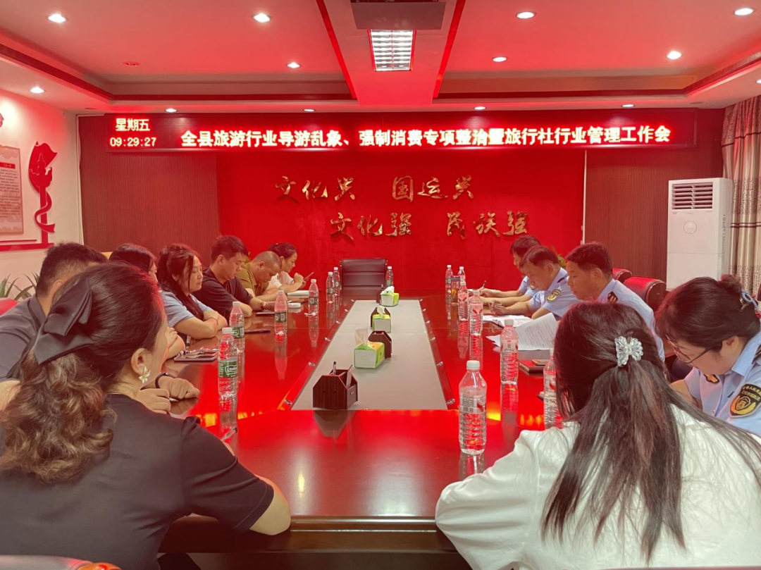 为扎实推进旅游行业导游乱象、强制消费专项整治,进一步规范旅游市场秩序,提升旅行社服务质量,8月1日,县文旅局组织召开全县旅游行业导游乱象、强制消费专项整治暨旅行社行业管理工作会。县文旅局分管负责同志主持会议,局市场股、执法大队全体同志及全县各旅行社负责人参加会议。
