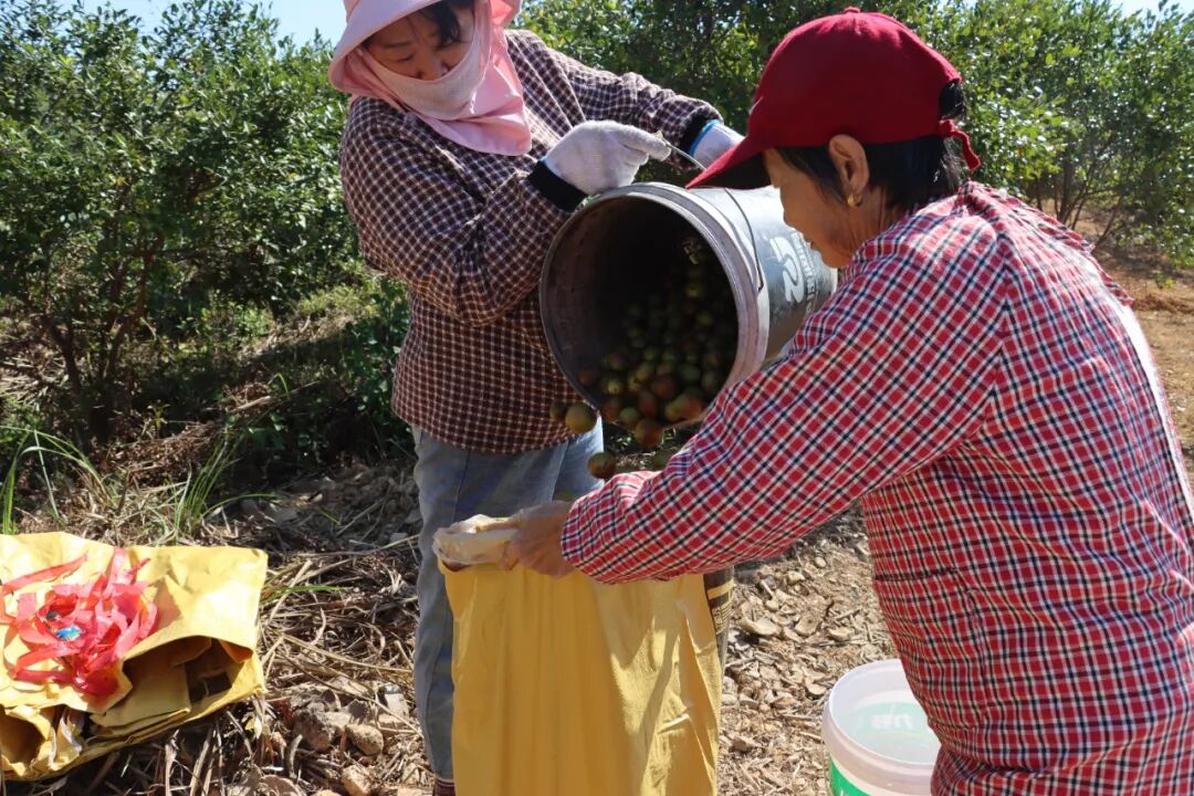 走进寿安镇灵珠村的登元农业油茶基地,翠绿枝叶间,圆润饱满的油茶果将枝头压得微微低垂。农户们手法娴熟地穿梭林间,指尖轻捻便将果实归入背篓,用细致动作确保“颗粒归仓”。“我们基地占地800多亩,年鲜果产值约60万斤。在带动脱贫方面,基地已覆盖全镇260余户脱贫户,每户每年最低可获得500元收益,同时为村集体每年贡献约3万元收入。”灵珠村党支部副书记胡长华说道。