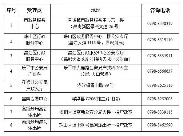 景德镇市公安机关流动人口居住证办理点