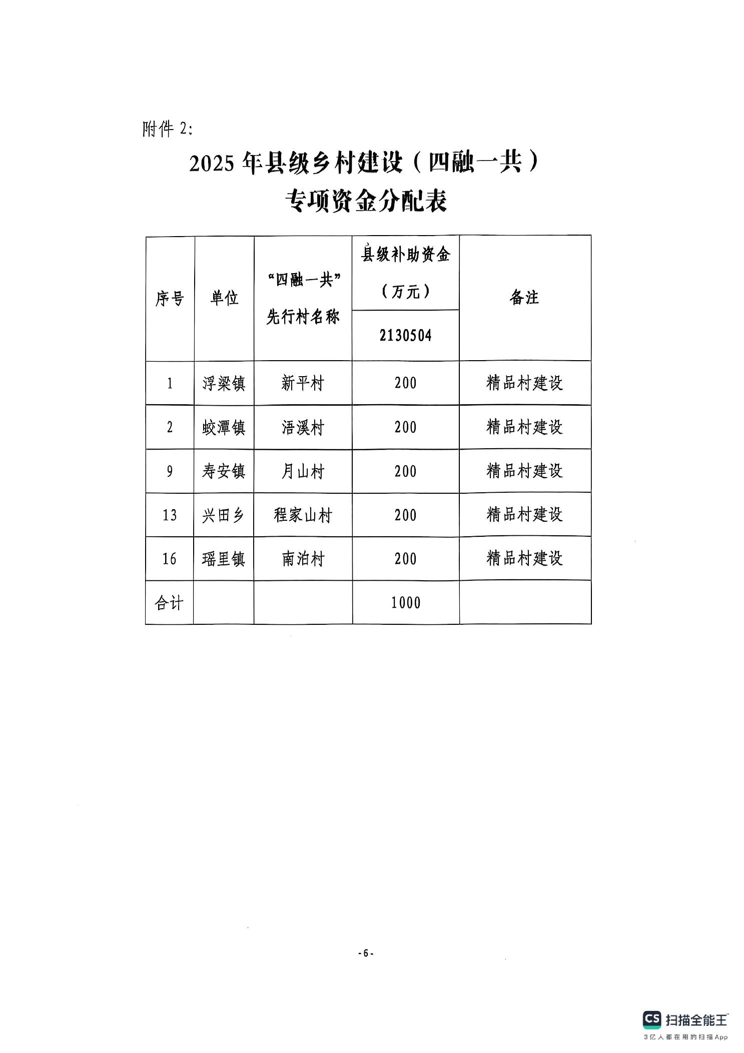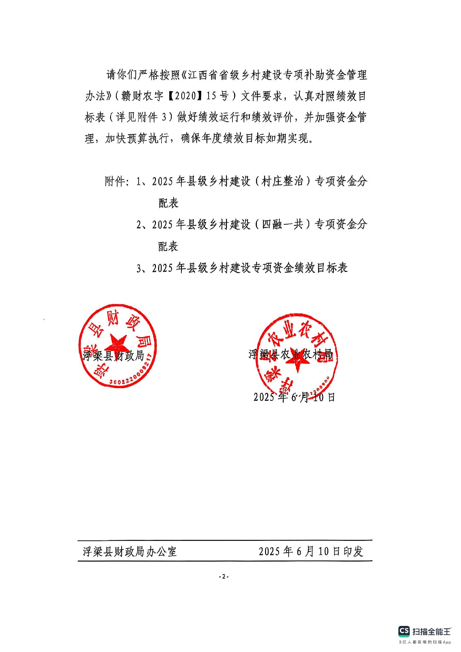 浮财农指【2025】26号《关于下达2025年县级乡村建设专项资金的通知》