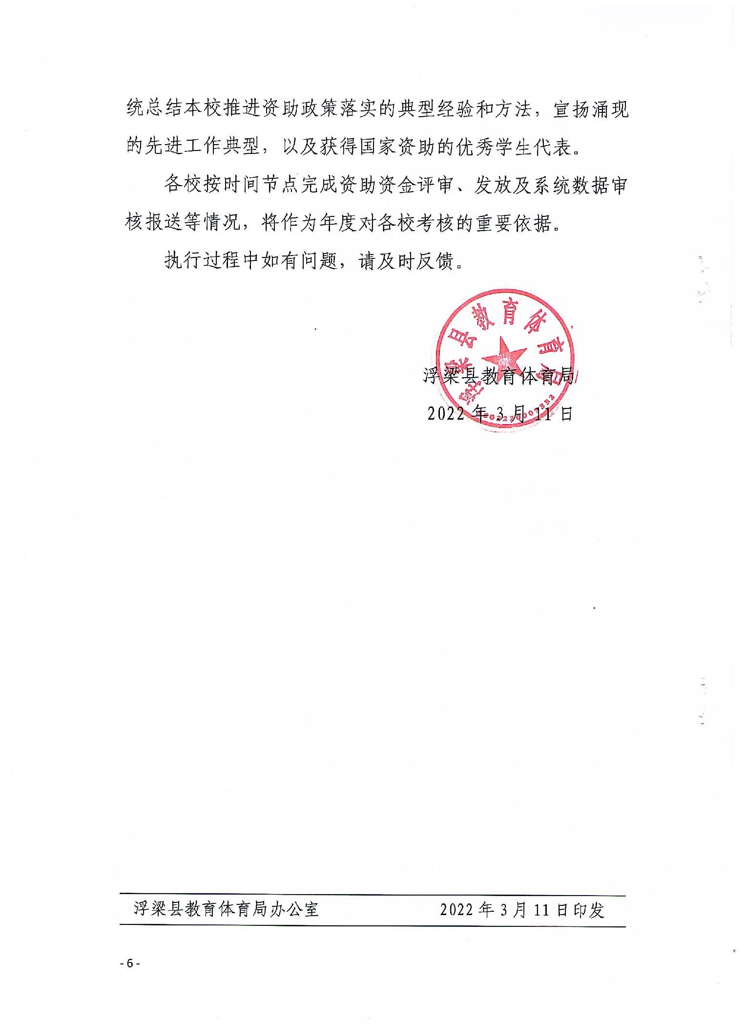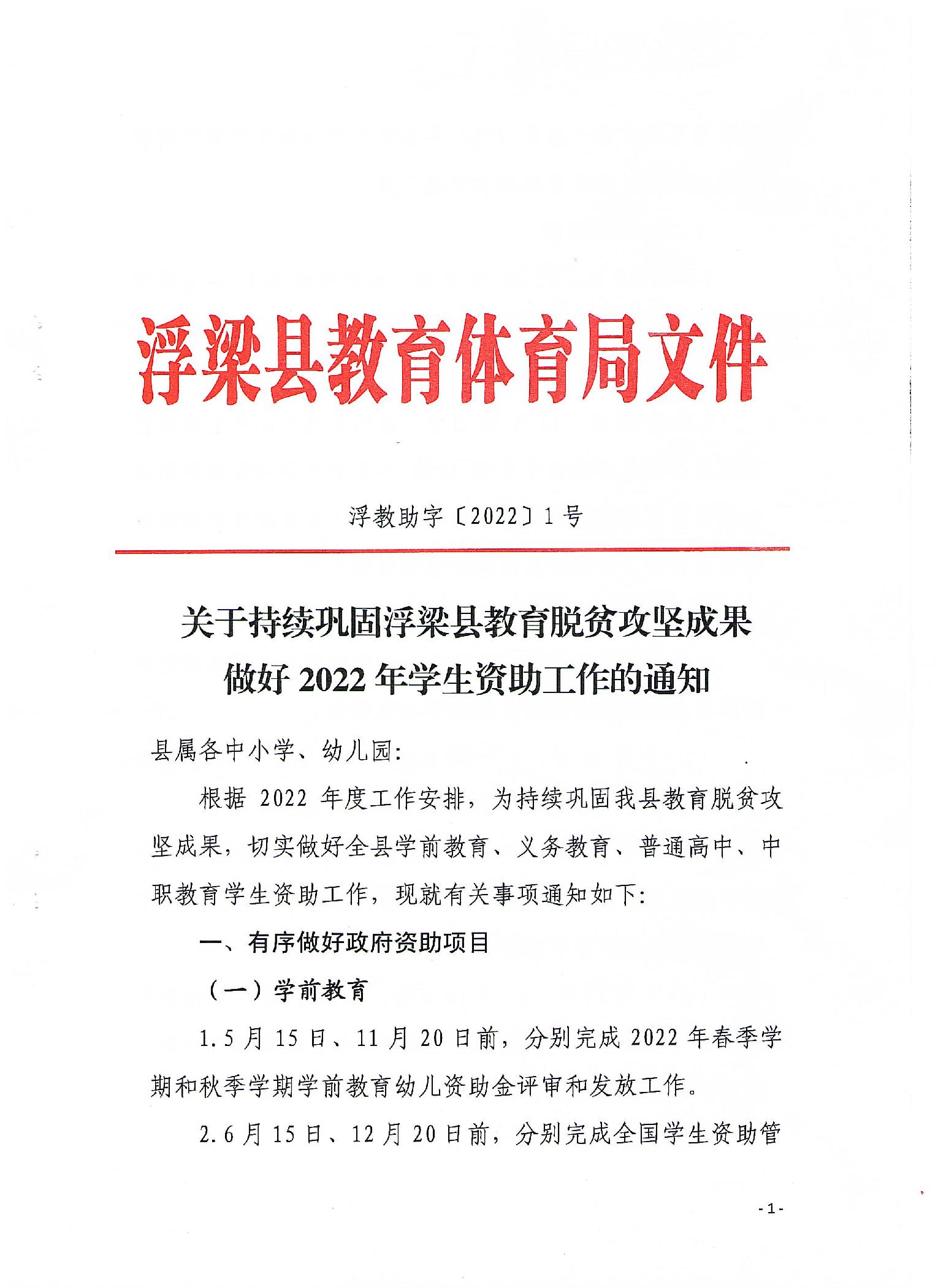 关于持续巩固浮梁县教育脱贫攻坚成果做好2022年学生资助工作的通知