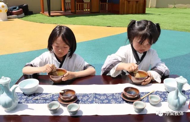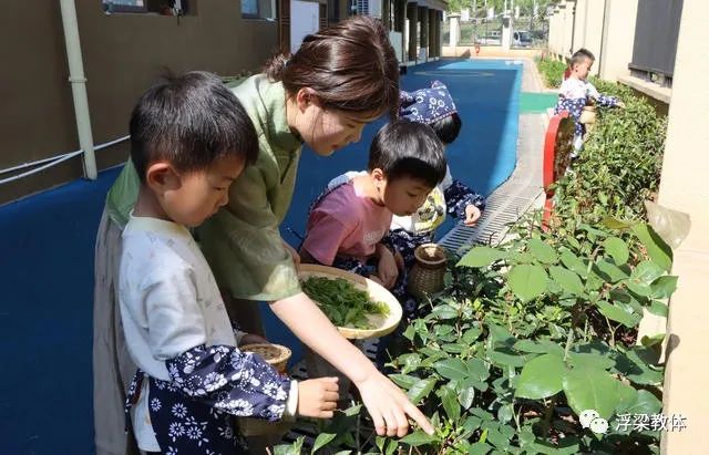 “孩子们,今天我们采摘的是一芽一叶还是一芽两叶啊?”“我们要摘一芽一叶一心的茶叶”……4月20日一大早,记者走进县二幼看到,孩子们穿着统一的素色采茶服,背着竹篓,围着一棵棵茶树,小心翼翼地采摘嫩芽儿。只见一双双小胖手在茶树间上下翻转,不一会儿,茶树梢的新绿即进入了孩子们的背篓里。随后,孩子们在茶艺师的带领下一起制茶、品茶。从捡茶、晒茶、炒茶到沏茶、品茶、点茶,孩子们像一个个成熟的小大人,制茶手法熟练,令人惊讶。