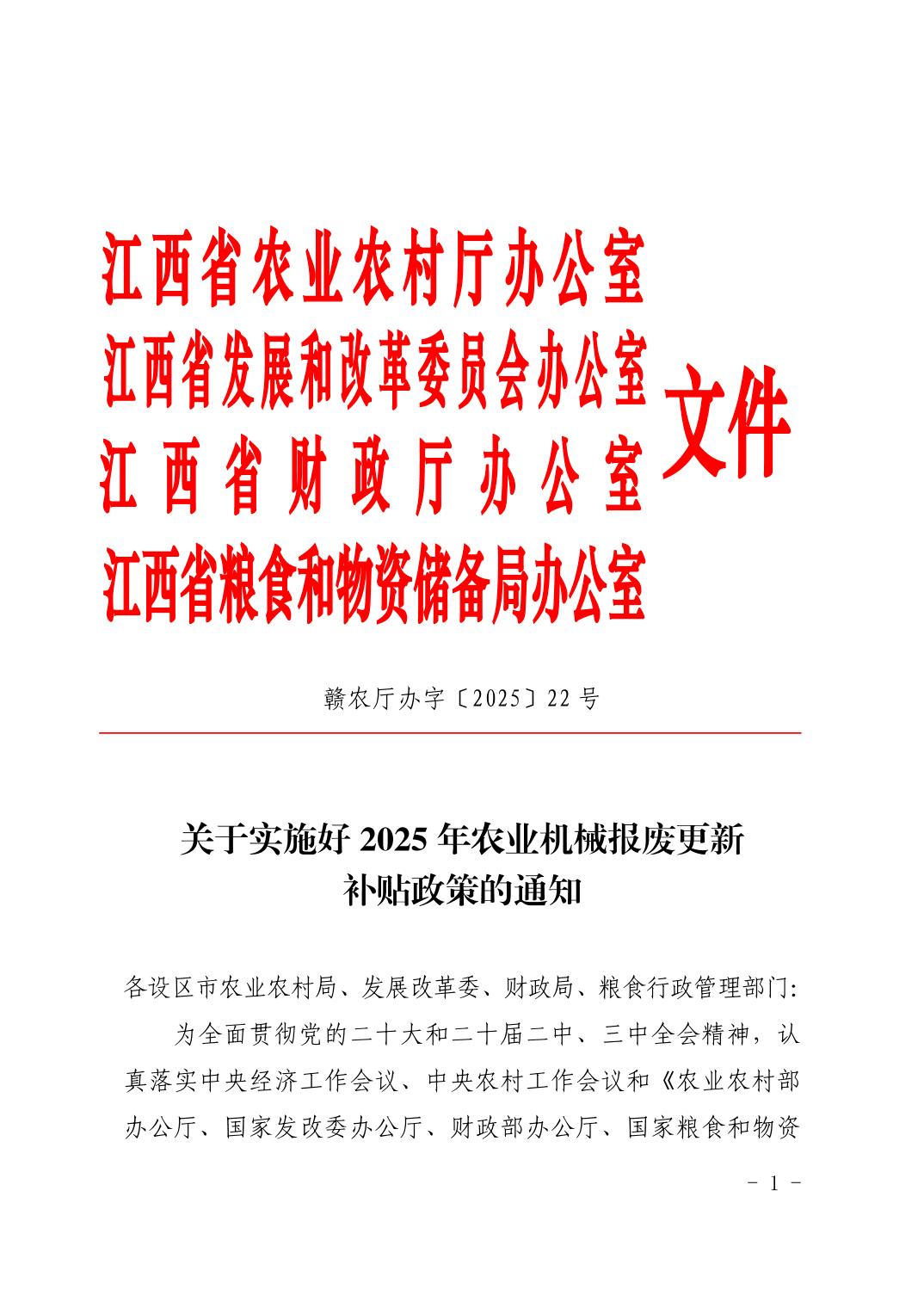 关于实施好2025年农业机械报废更新补贴政策的通知