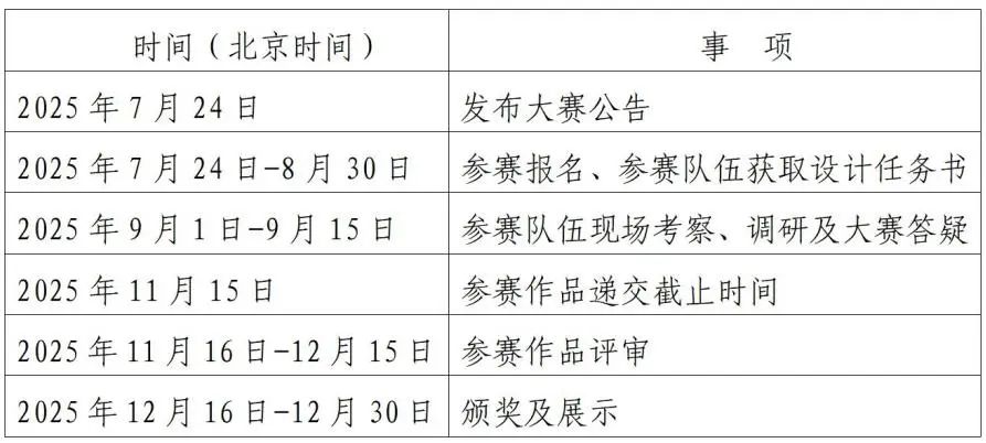 大赛活动时间安排如下(所有时间均为中华人民共和国北京时间,下同):