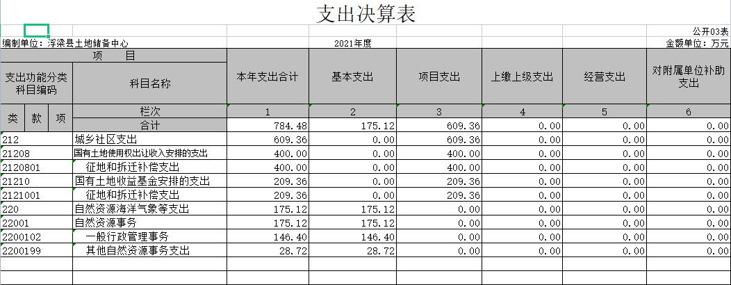 2021年度单位决算公开格式: